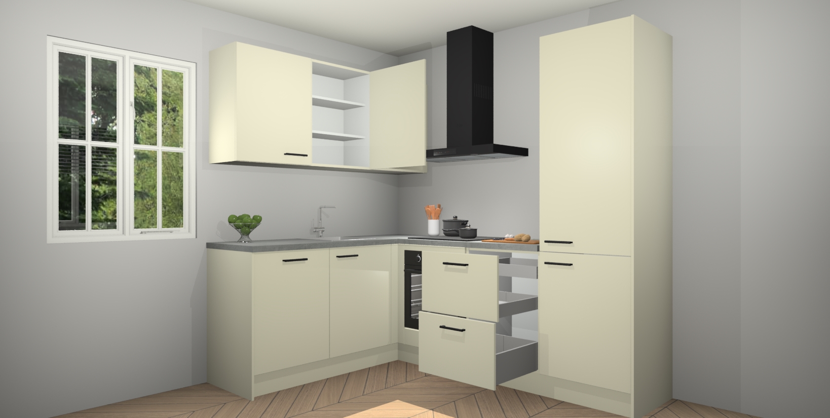 Inclusief plinten, stelpoten en werkblad