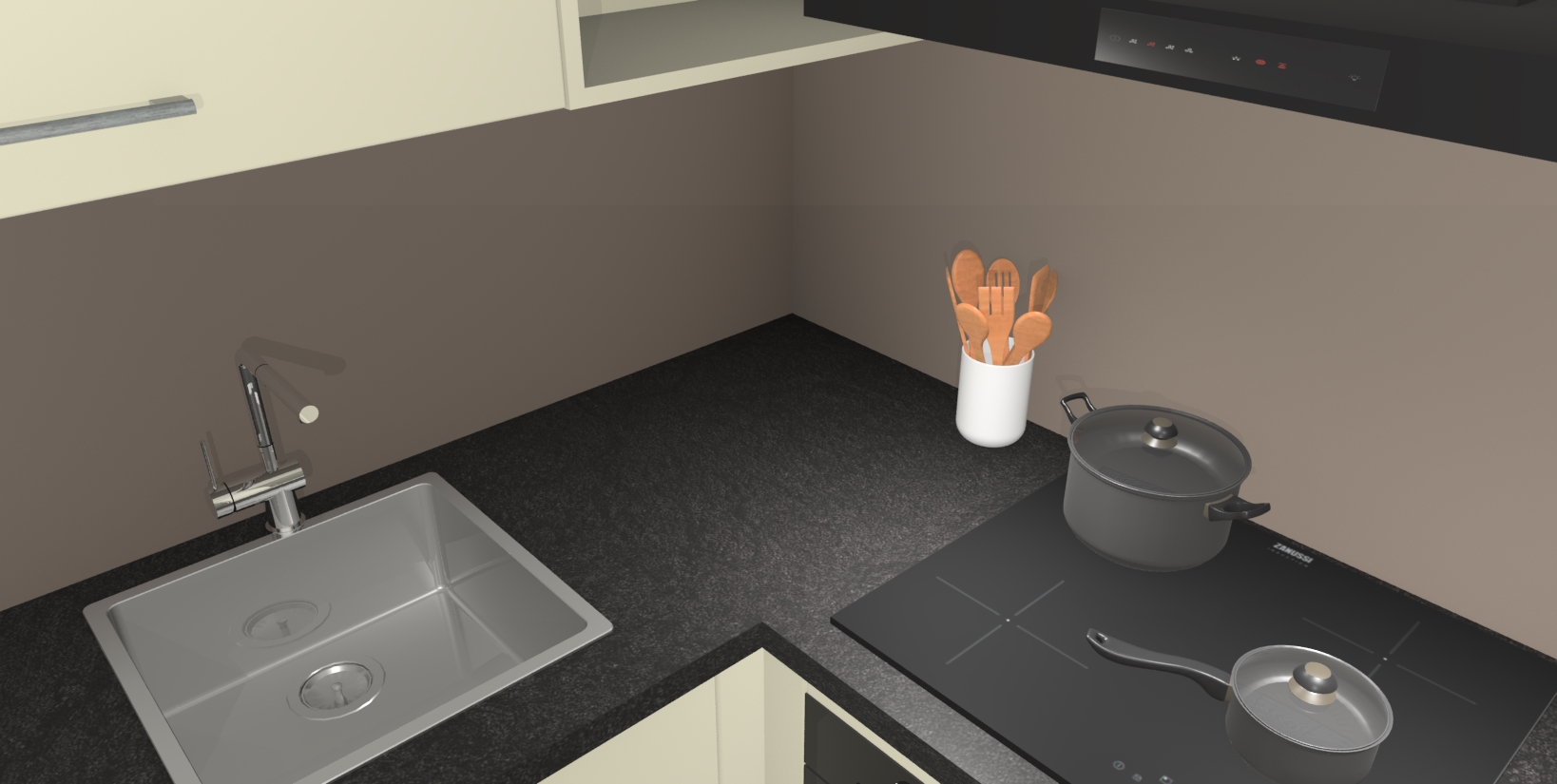 - Uitsparing van kookplaat, spoelbak en kraan dient u zelf te verzorgen.