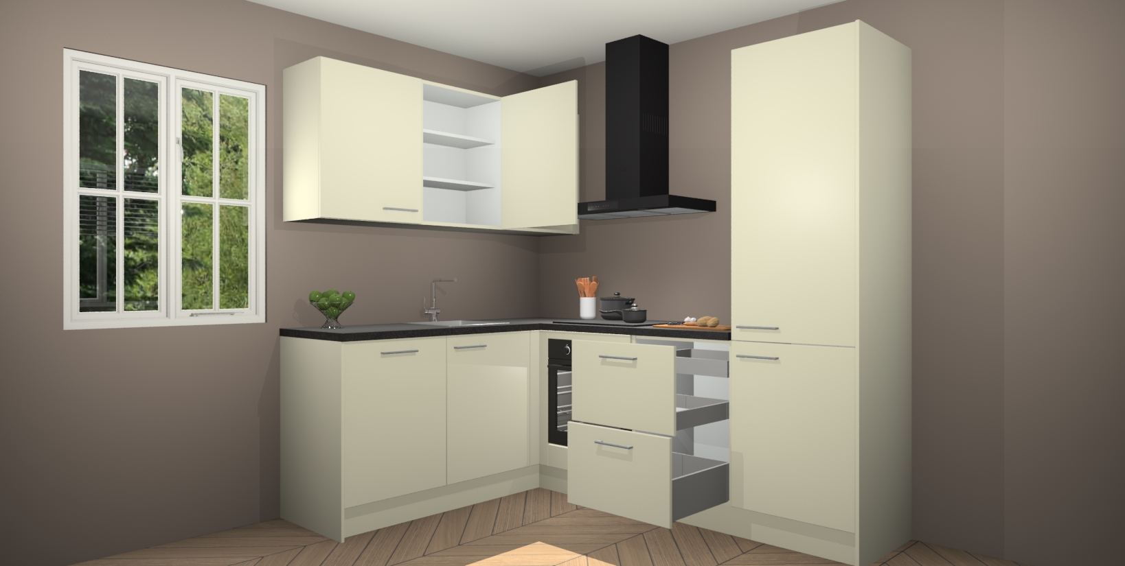 Inclusief plinten, stelpoten en werkblad