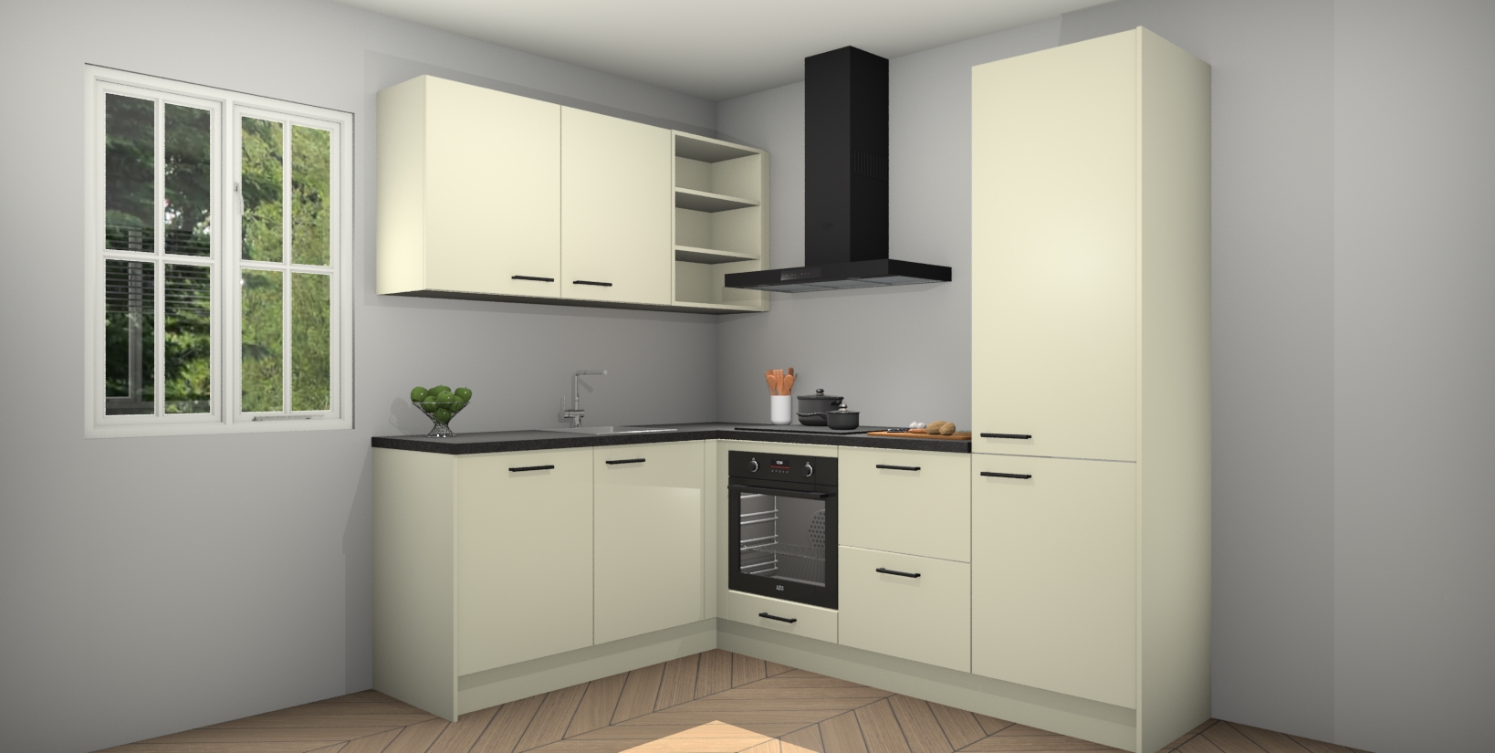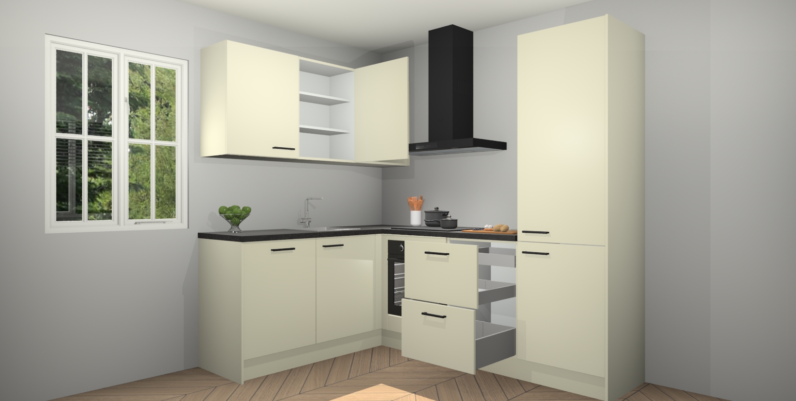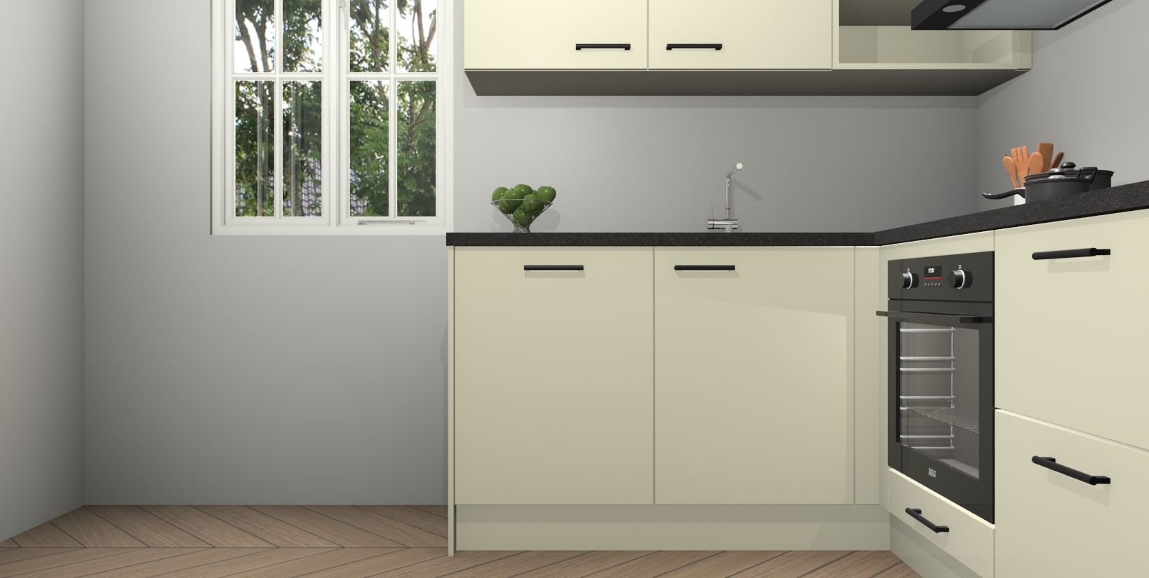 Inclusief plinten, stelpoten en werkblad