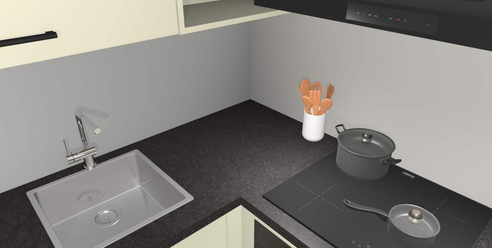 - Uitsparing van kookplaat, spoelbak en kraan dient u zelf te verzorgen.