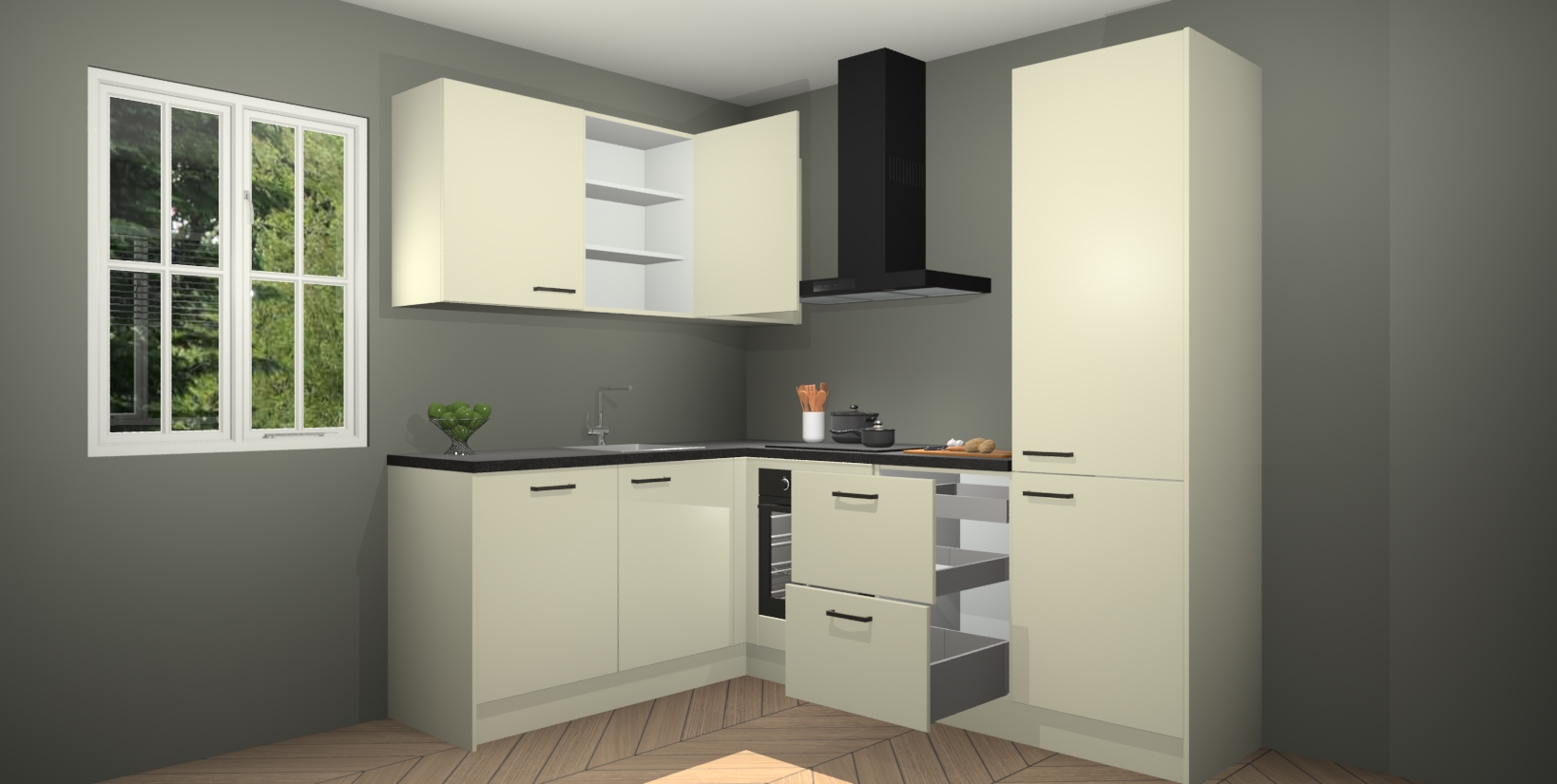 Inclusief plinten, stelpoten en werkblad