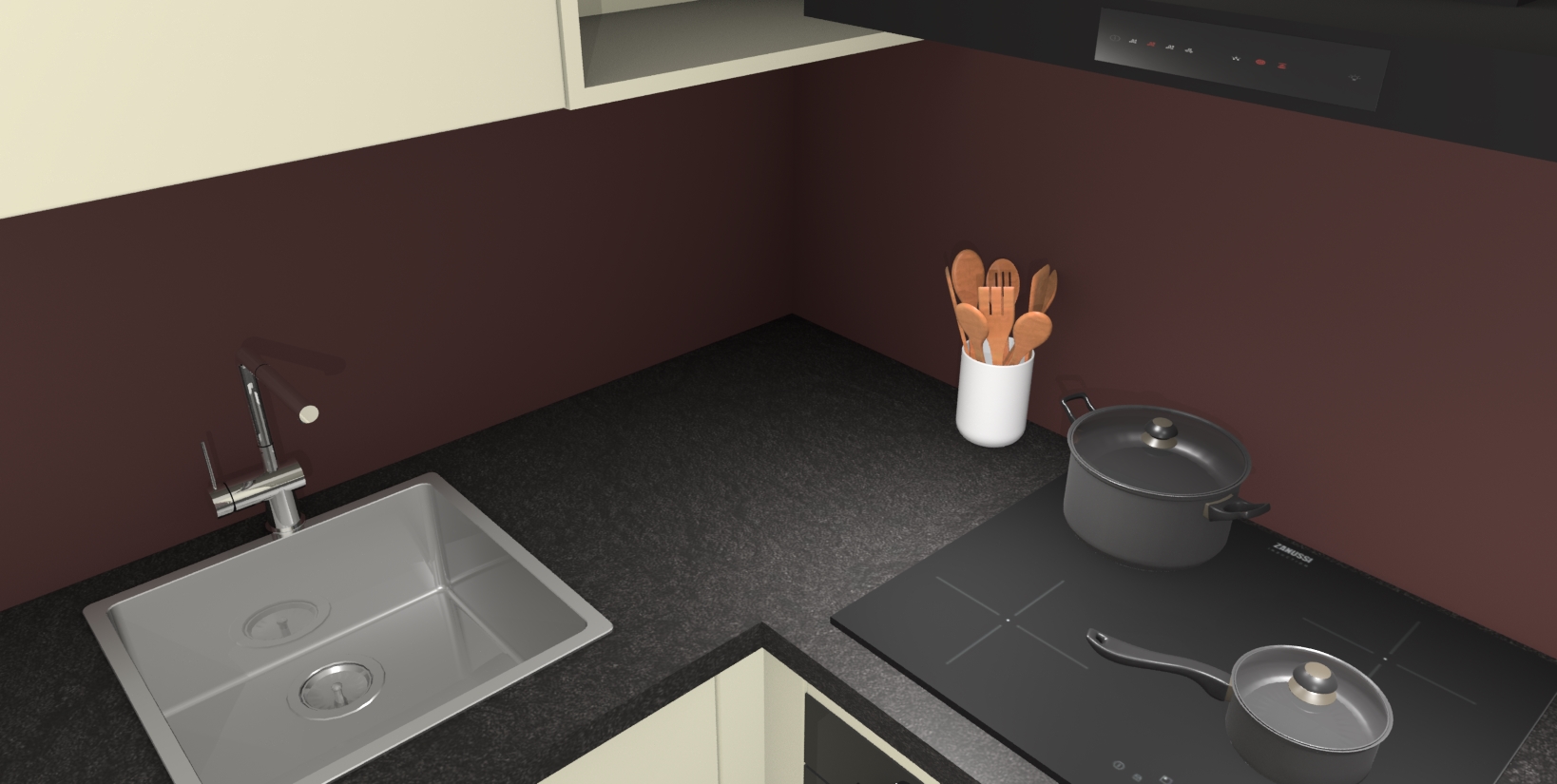 - Uitsparing van kookplaat, spoelbak en kraan dient u zelf te verzorgen.