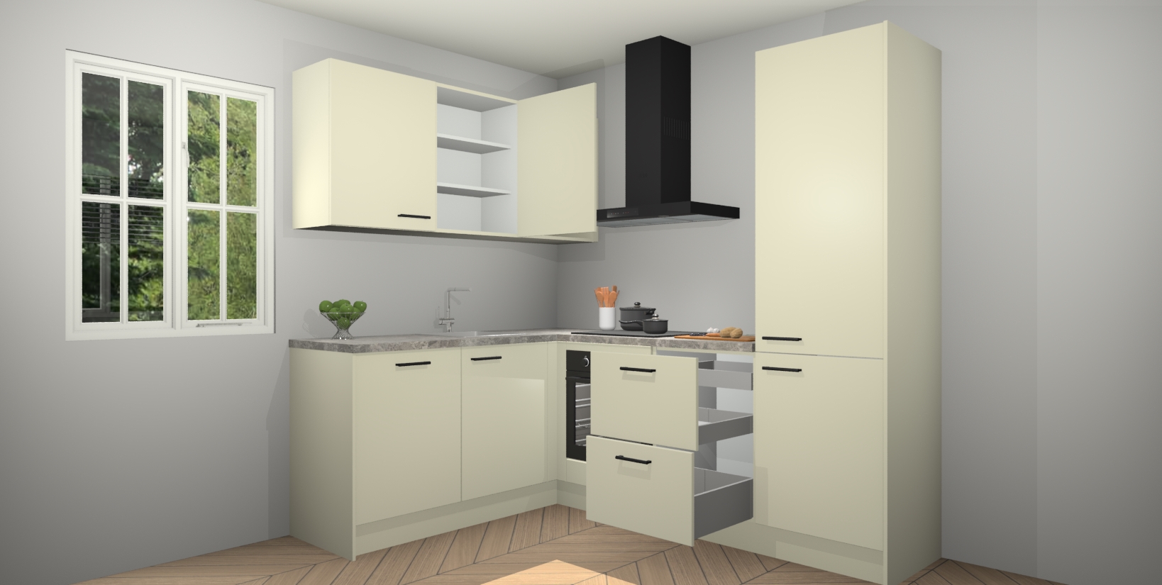 In deze box zijn alle kleuren verzameld van de deuren en werkbladen. Vraag de gratis kleurenbox aan en kijk thuis rustig verder!