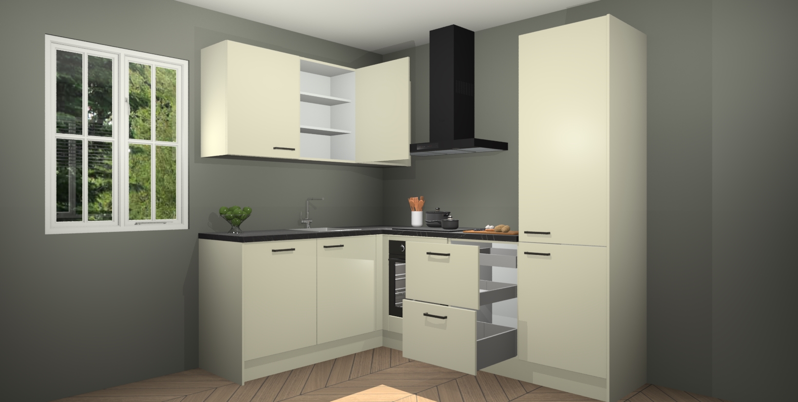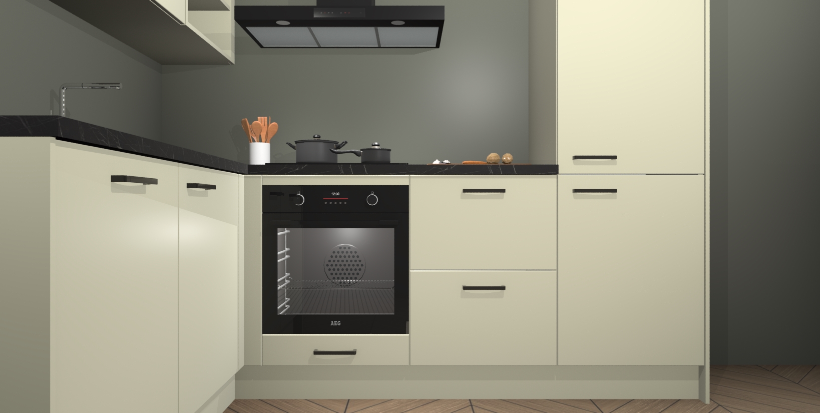 Inclusief plinten, stelpoten en werkblad