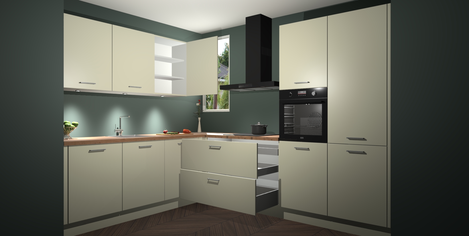 De ruime opbergruimte van dit model maakt het bereiden van voedsel en het gebruik van apparaten snel en gemakkelijk. Het beste van alles is dat het wordt geleverd met vijf inbouwapparaten: een oven, inductiekookplaat, afzuigkap, vaatwasser en koelkast - die allemaal gemakkelijk kunnen worden opgewaardeerd naar AEG na aankoop. Wat de gemaksfactor nog groter maakt, is het feit dat alle cabines voorgemonteerd worden geleverd, zodat u er meteen mee aan de slag kunt!