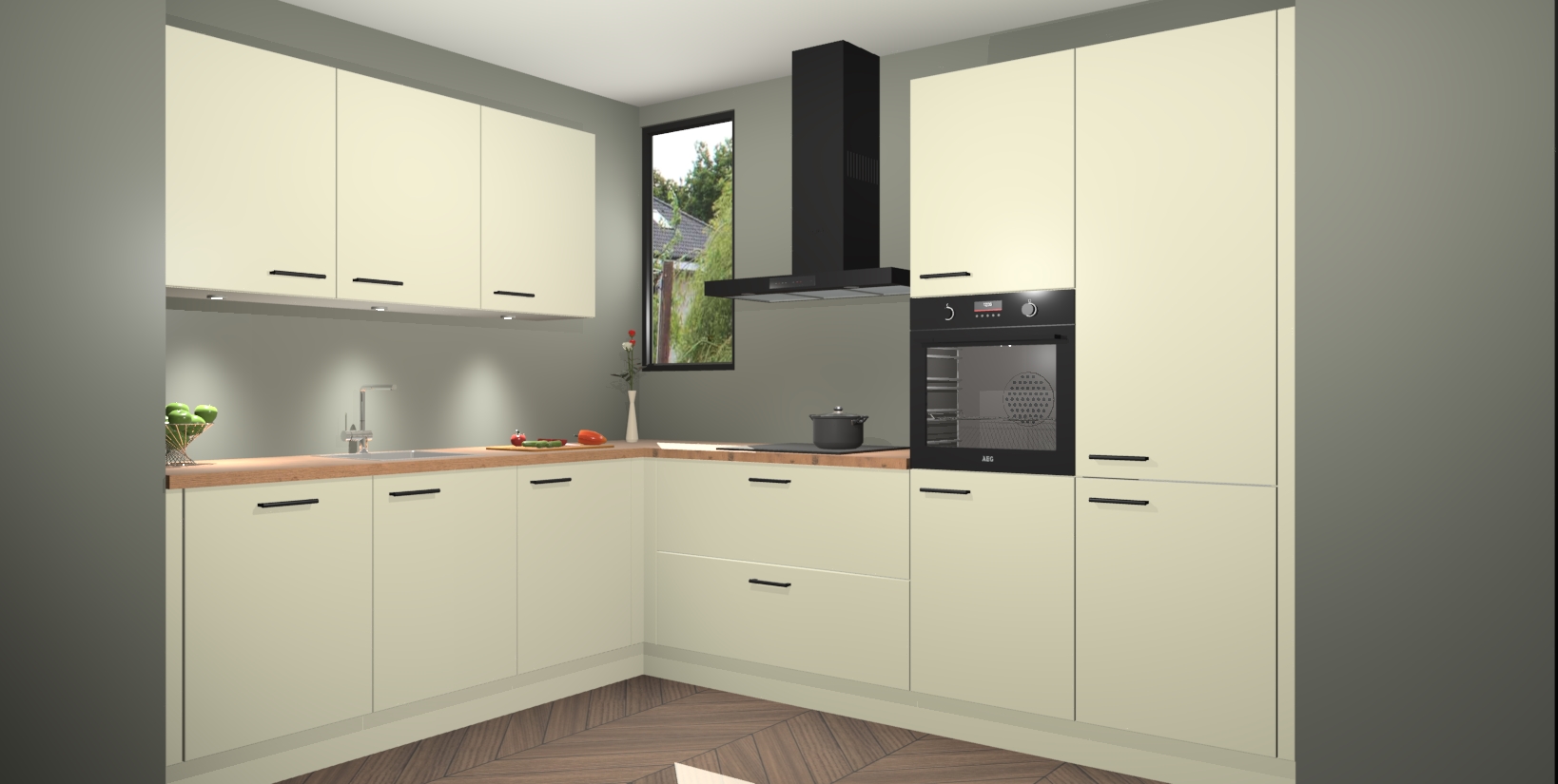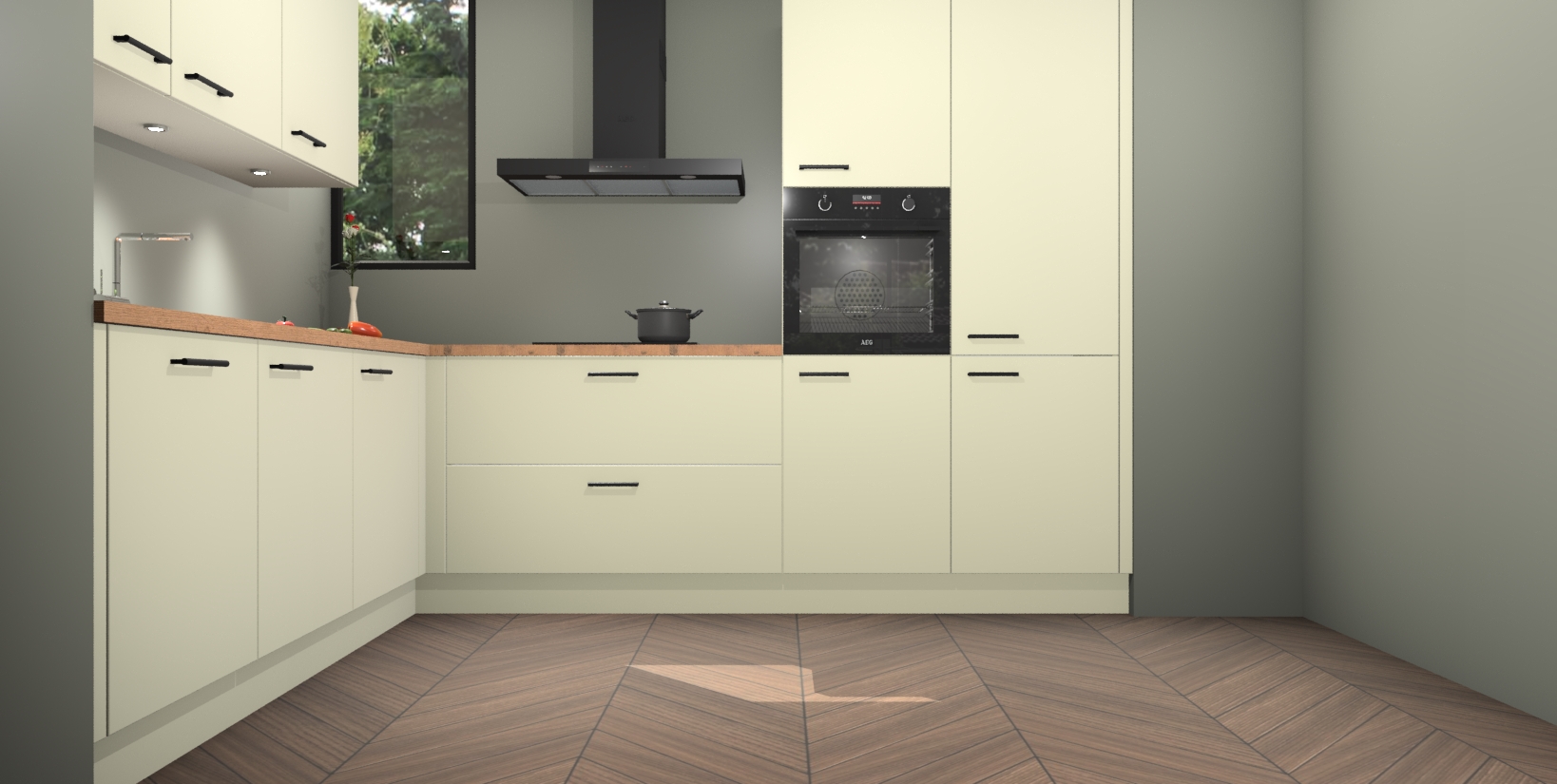 Inclusief plinten, stelpoten en werkblad