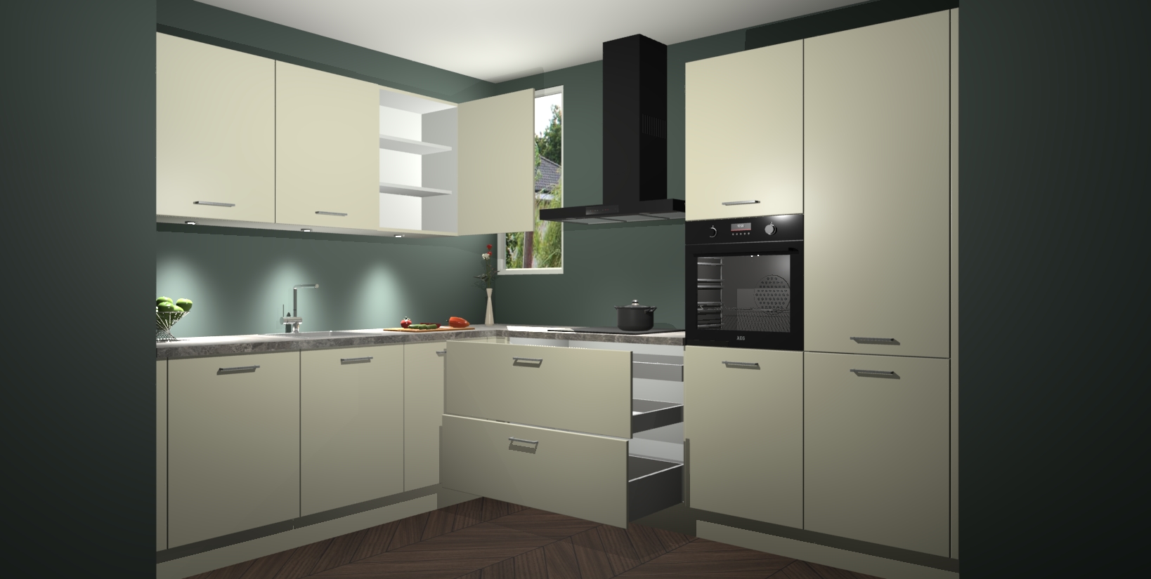 De ruime opbergruimte van dit model maakt het bereiden van voedsel en het gebruik van apparaten snel en gemakkelijk. Het beste van alles is dat het wordt geleverd met vijf inbouwapparaten: een oven, inductiekookplaat, afzuigkap, vaatwasser en koelkast - die allemaal gemakkelijk kunnen worden opgewaardeerd naar AEG na aankoop. Wat de gemaksfactor nog groter maakt, is het feit dat alle cabines voorgemonteerd worden geleverd, zodat u er meteen mee aan de slag kunt!