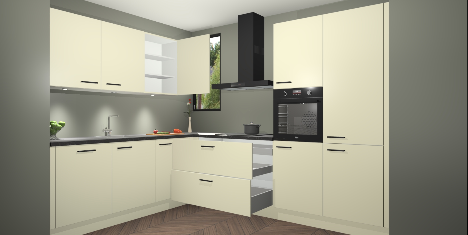 In deze box zijn alle kleuren verzameld van de deuren en werkbladen. Vraag de gratis kleurenbox aan en kijk thuis rustig verder!