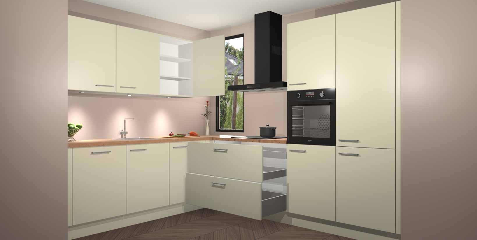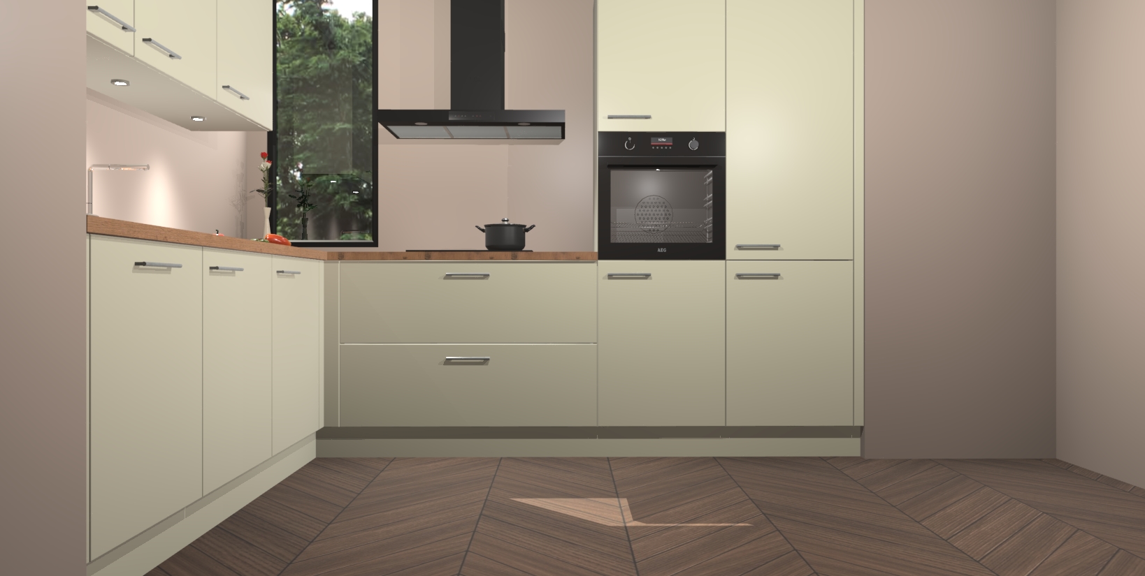 Inclusief plinten, stelpoten en werkblad