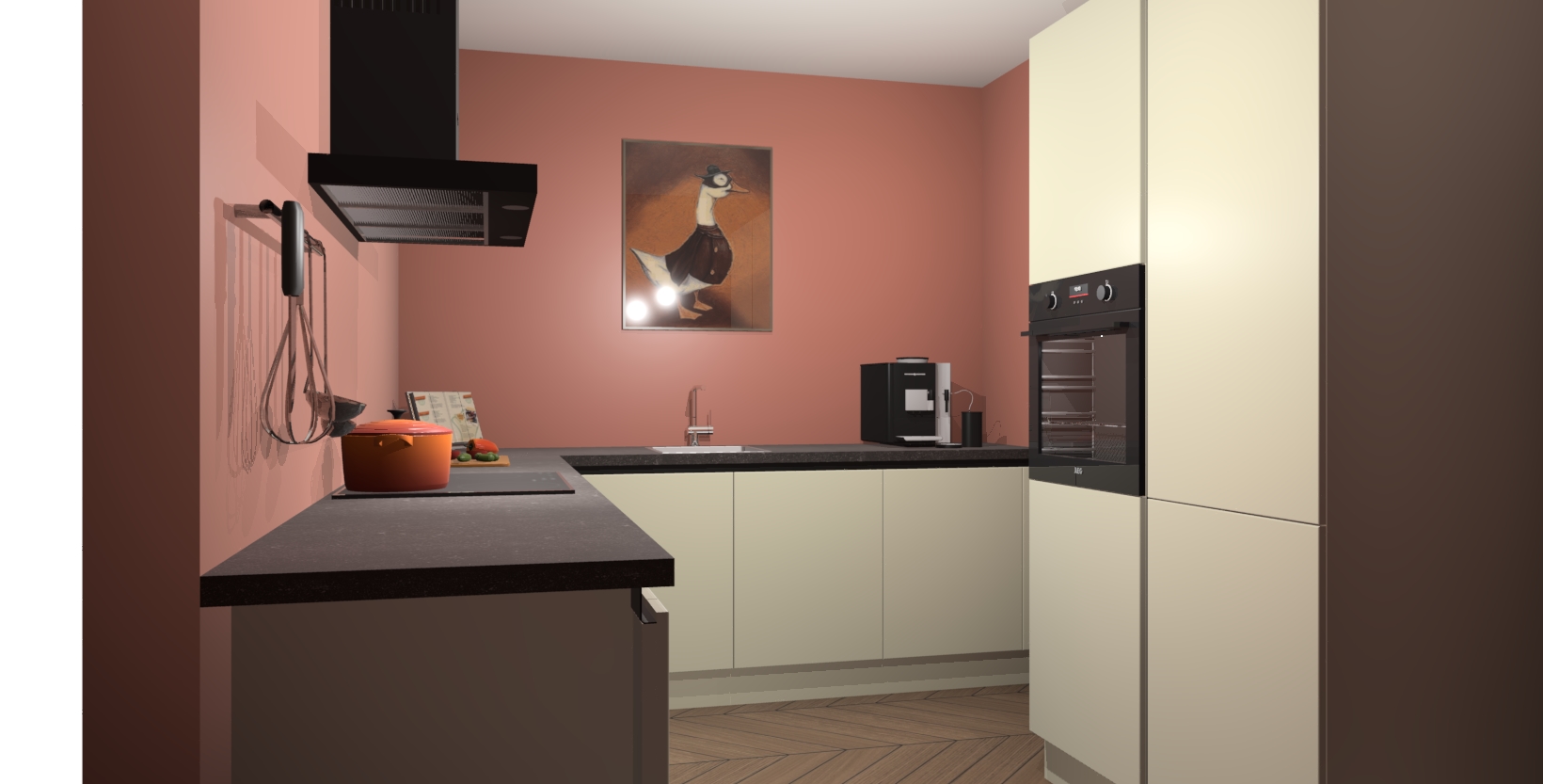 Met een modern, tijdloos design en ruime opslagruimte, zult u zich in no-time thuis voelen in uw nieuwe keuken. Uw leven wordt eenvoudiger met de soft-close deuren die voor het ultieme stille comfort zorgen - geen geluid dat u stoort terwijl u kookt. Ook is de keuken voorzien van 5 ingebouwde apparaten: een oven, inductie kookplaat, afzuigkap, vaatwasser en koelkast. Deze kunnen gemakkelijk na bestelling worden bijgewerkt naar AEG - waardoor uw luxe ervaring compleet is.