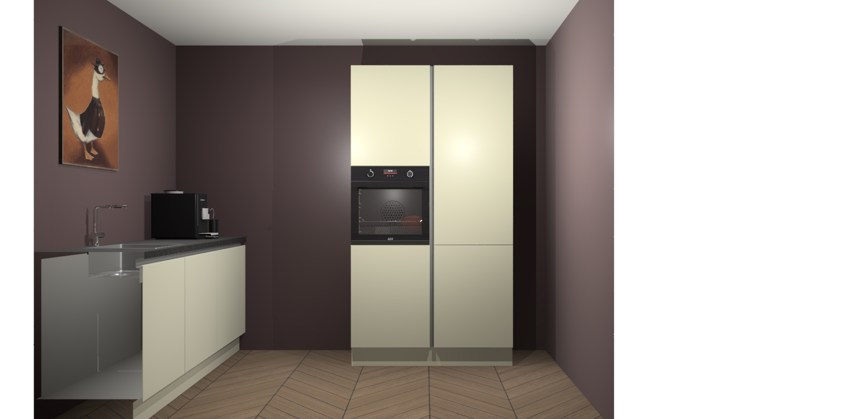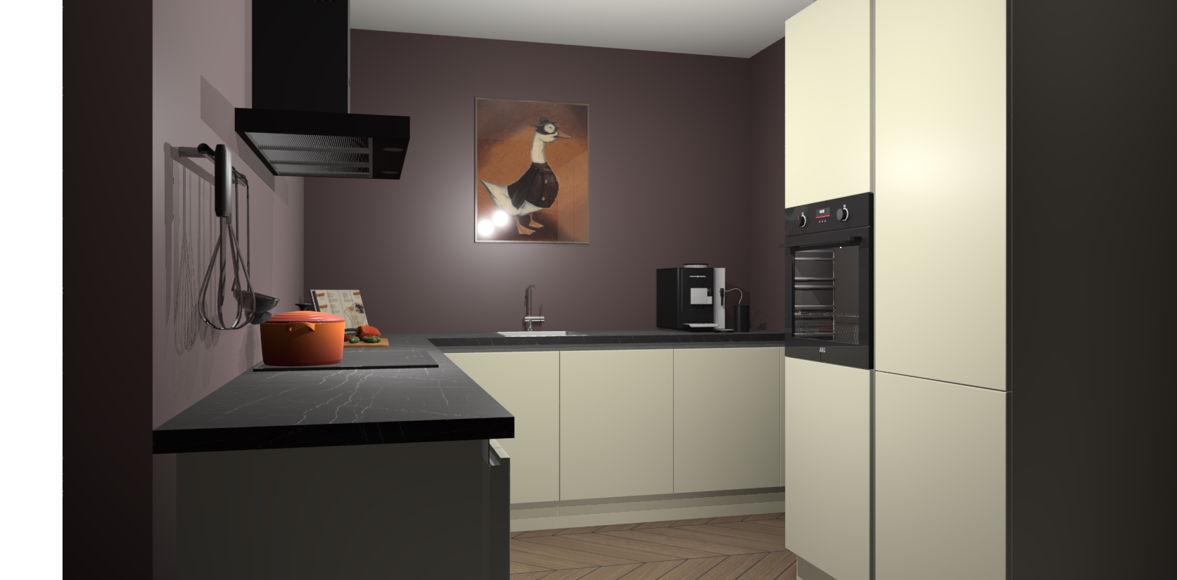 Met een modern, tijdloos design en ruime opslagruimte, zult u zich in no-time thuis voelen in uw nieuwe keuken. Uw leven wordt eenvoudiger met de soft-close deuren die voor het ultieme stille comfort zorgen - geen geluid dat u stoort terwijl u kookt. Ook is de keuken voorzien van 5 ingebouwde apparaten: een oven, inductie kookplaat, afzuigkap, vaatwasser en koelkast. Deze kunnen gemakkelijk na bestelling worden bijgewerkt naar AEG - waardoor uw luxe ervaring compleet is.