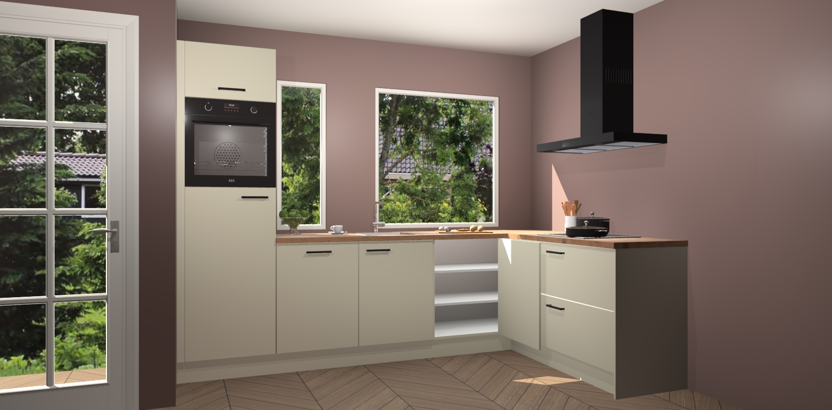 Deze complete keuken wordt geleverd met 5 inbouwapparaten: een oven, inductiekookplaat, afzuigkap, vaatwasser en koelkast. De toestellen kunnen na bestelling ook gemakkelijk worden opgewaardeerd naar AEG. Bovendien is elke deur in deze keuken voorzien van handige softclose technologie voor eenvoudig gebruik! Als een leuke toevoeging zit in deze keuken ook een carrousel, zo hoef je niet meer de hoek in duiken om iets te pakken.