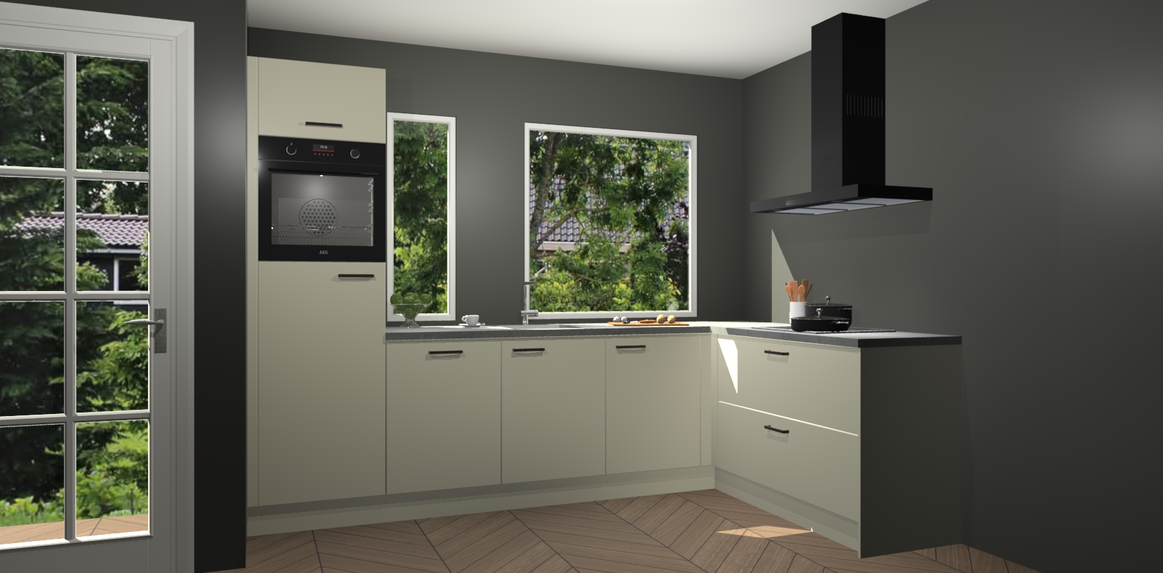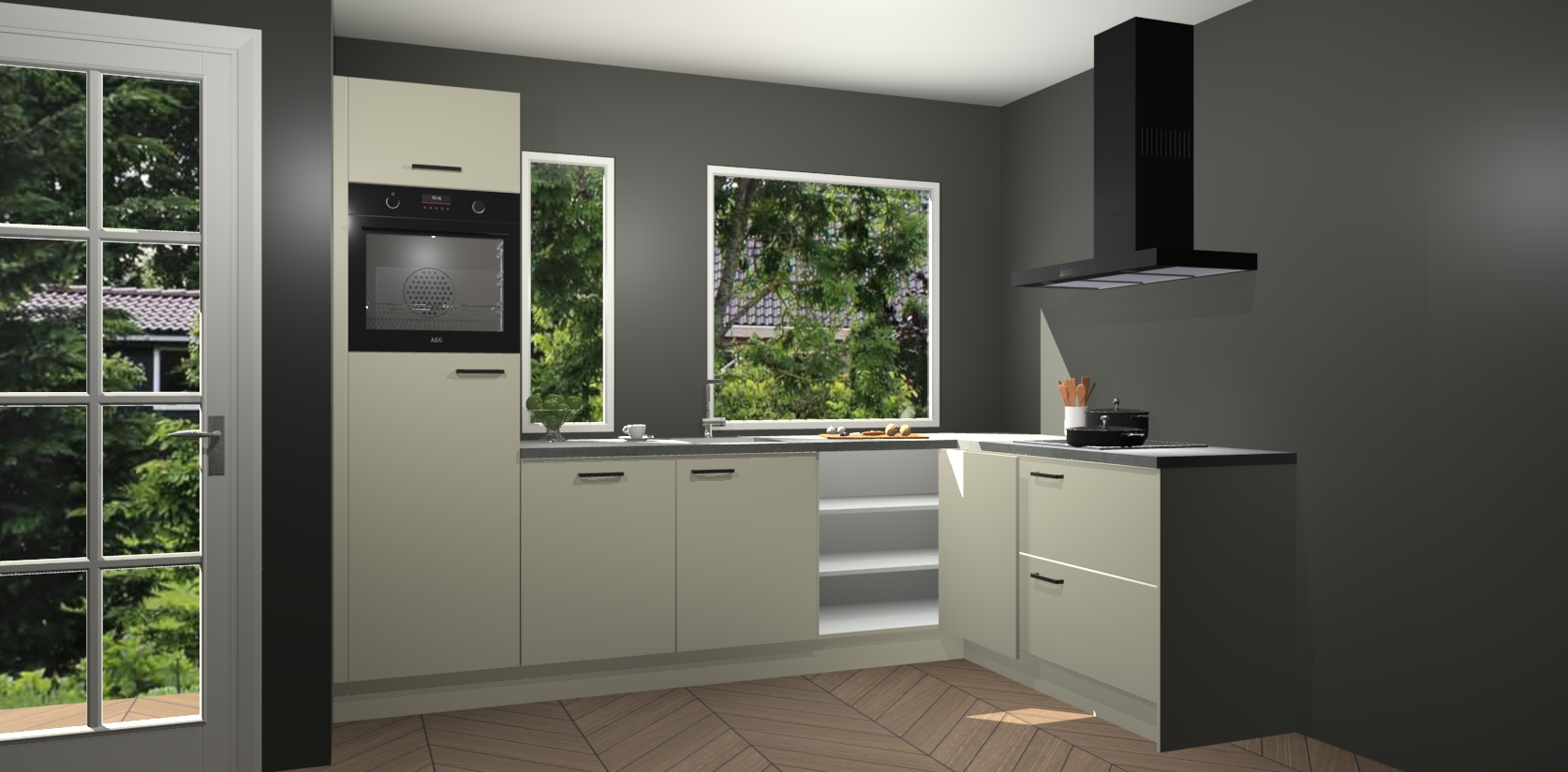 Deze complete keuken wordt geleverd met 5 inbouwapparaten: een oven, inductiekookplaat, afzuigkap, vaatwasser en koelkast.  De toestellen kunnen na bestelling ook gemakkelijk worden opgewaardeerd naar AEG. Bovendien is elke deur in deze keuken voorzien van handige softclose technologie voor eenvoudig gebruik! Als een leuke toevoeging zit in deze keuken ook een carrousel, zo hoef je niet meer de hoek in duiken om iets te pakken.
