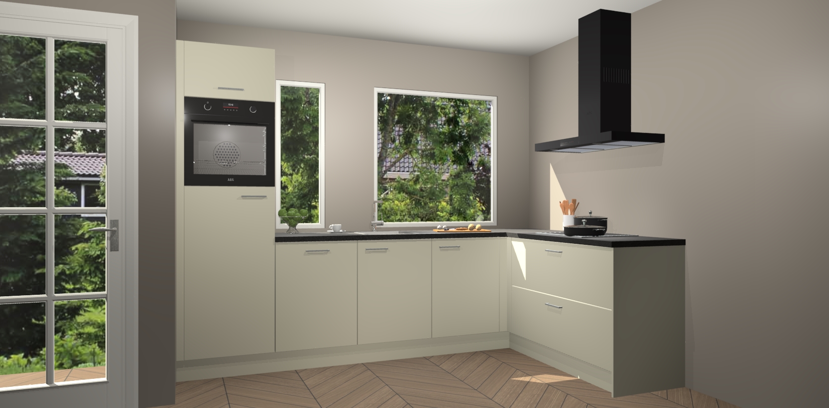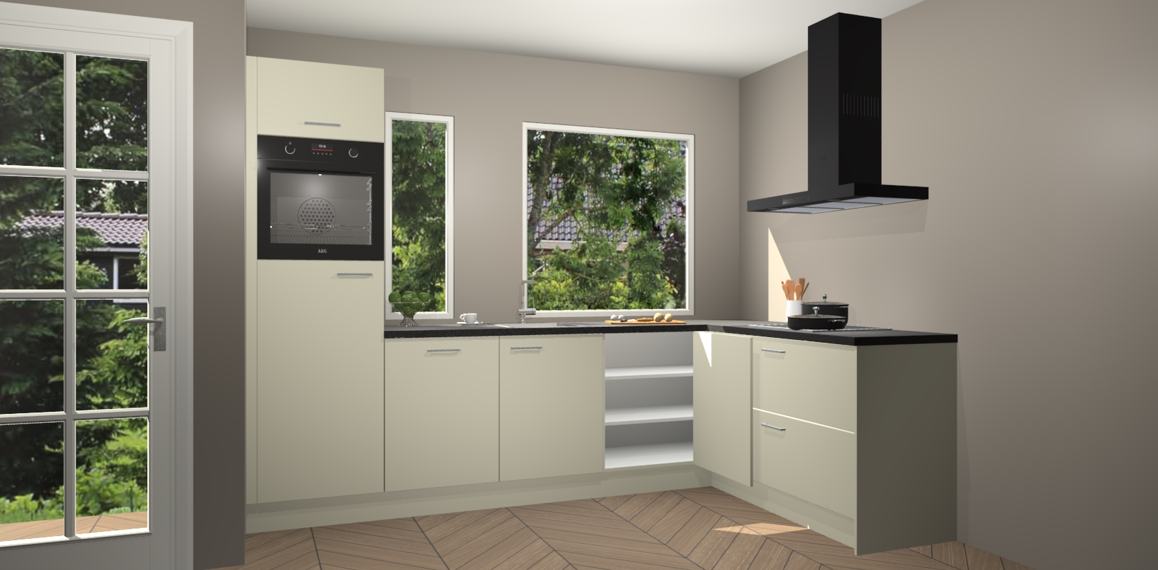 Deze complete keuken wordt geleverd met 5 inbouwapparaten: een oven, inductiekookplaat, afzuigkap, vaatwasser en koelkast.  De toestellen kunnen na bestelling ook gemakkelijk worden opgewaardeerd naar AEG. Bovendien is elke deur in deze keuken voorzien van handige softclose technologie voor eenvoudig gebruik! Als een leuke toevoeging zit in deze keuken ook een carrousel, zo hoef je niet meer de hoek in duiken om iets te pakken.