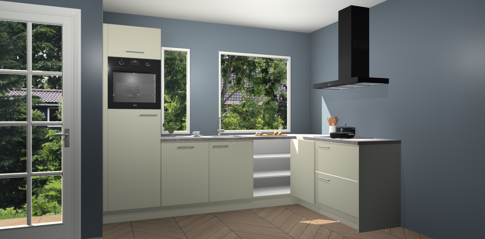 Deze complete keuken wordt geleverd met 5 inbouwapparaten: een oven, inductiekookplaat, afzuigkap, vaatwasser en koelkast. De toestellen kunnen na bestelling ook gemakkelijk worden opgewaardeerd naar AEG. Bovendien is elke deur in deze keuken voorzien van handige softclose technologie voor eenvoudig gebruik! Als een leuke toevoeging zit in deze keuken ook een carrousel, zo hoef je niet meer de hoek in duiken om iets te pakken.
