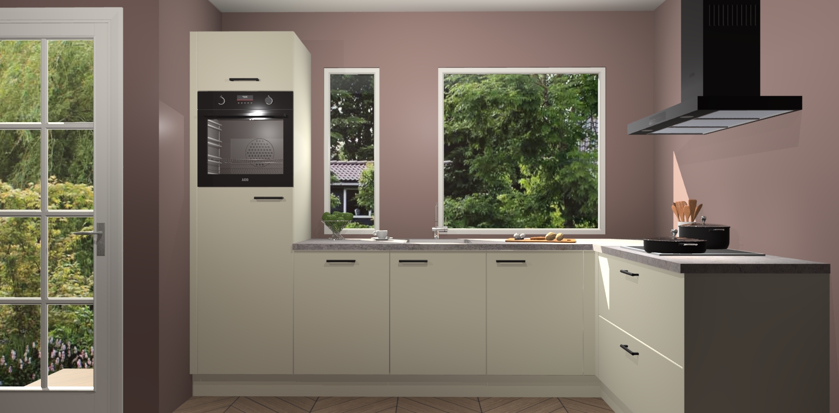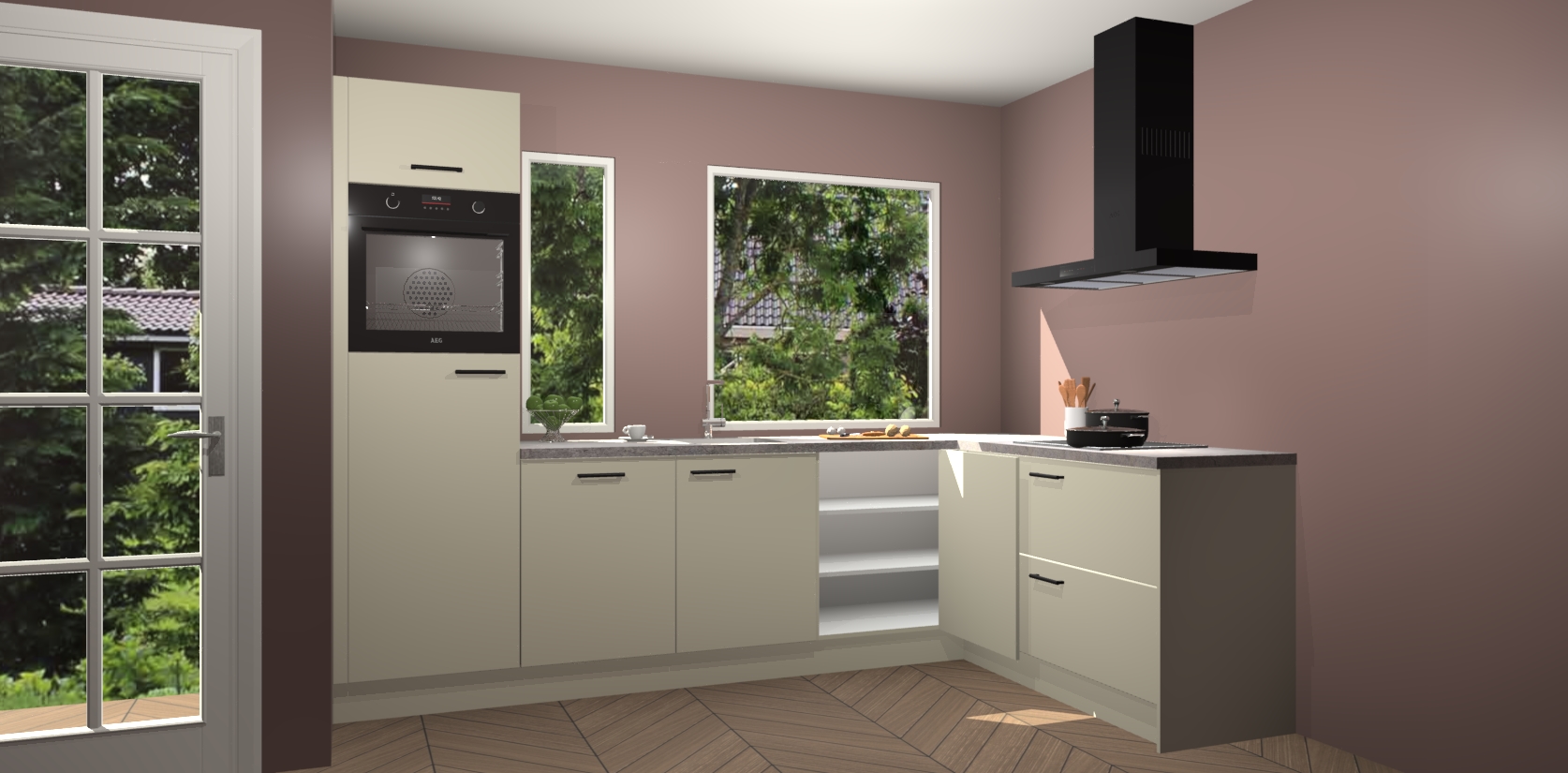 Deze complete keuken wordt geleverd met 5 inbouwapparaten: een oven, inductiekookplaat, afzuigkap, vaatwasser en koelkast. De toestellen kunnen na bestelling ook gemakkelijk worden opgewaardeerd naar AEG. Bovendien is elke deur in deze keuken voorzien van handige softclose technologie voor eenvoudig gebruik! Als een leuke toevoeging zit in deze keuken ook een carrousel, zo hoef je niet meer de hoek in duiken om iets te pakken.