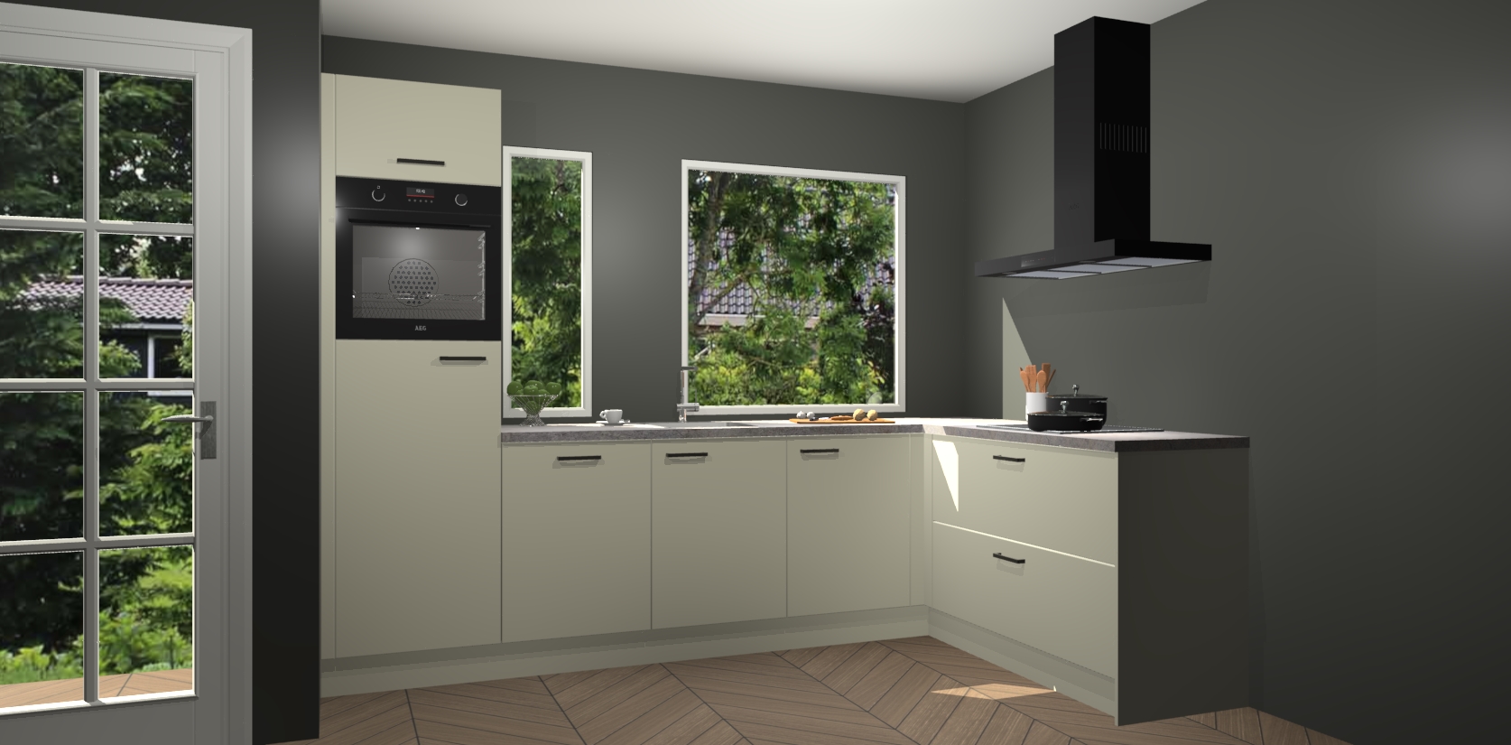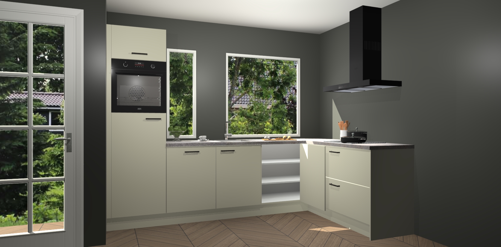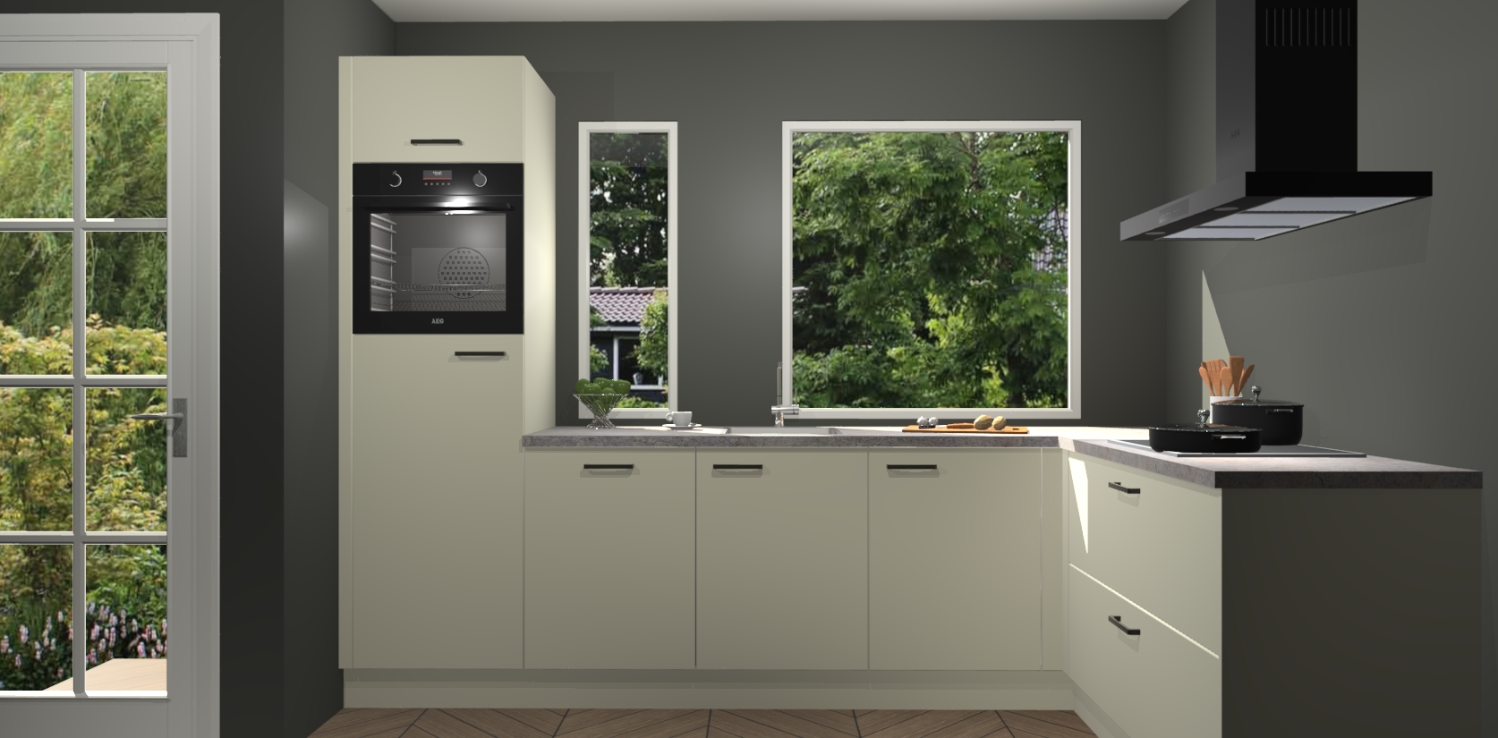 Deze complete keuken wordt geleverd met 5 inbouwapparaten: een oven, inductiekookplaat, afzuigkap, vaatwasser en koelkast. De toestellen kunnen na bestelling ook gemakkelijk worden opgewaardeerd naar AEG. Bovendien is elke deur in deze keuken voorzien van handige softclose technologie voor eenvoudig gebruik! Als een leuke toevoeging zit in deze keuken ook een carrousel, zo hoef je niet meer de hoek in duiken om iets te pakken.
