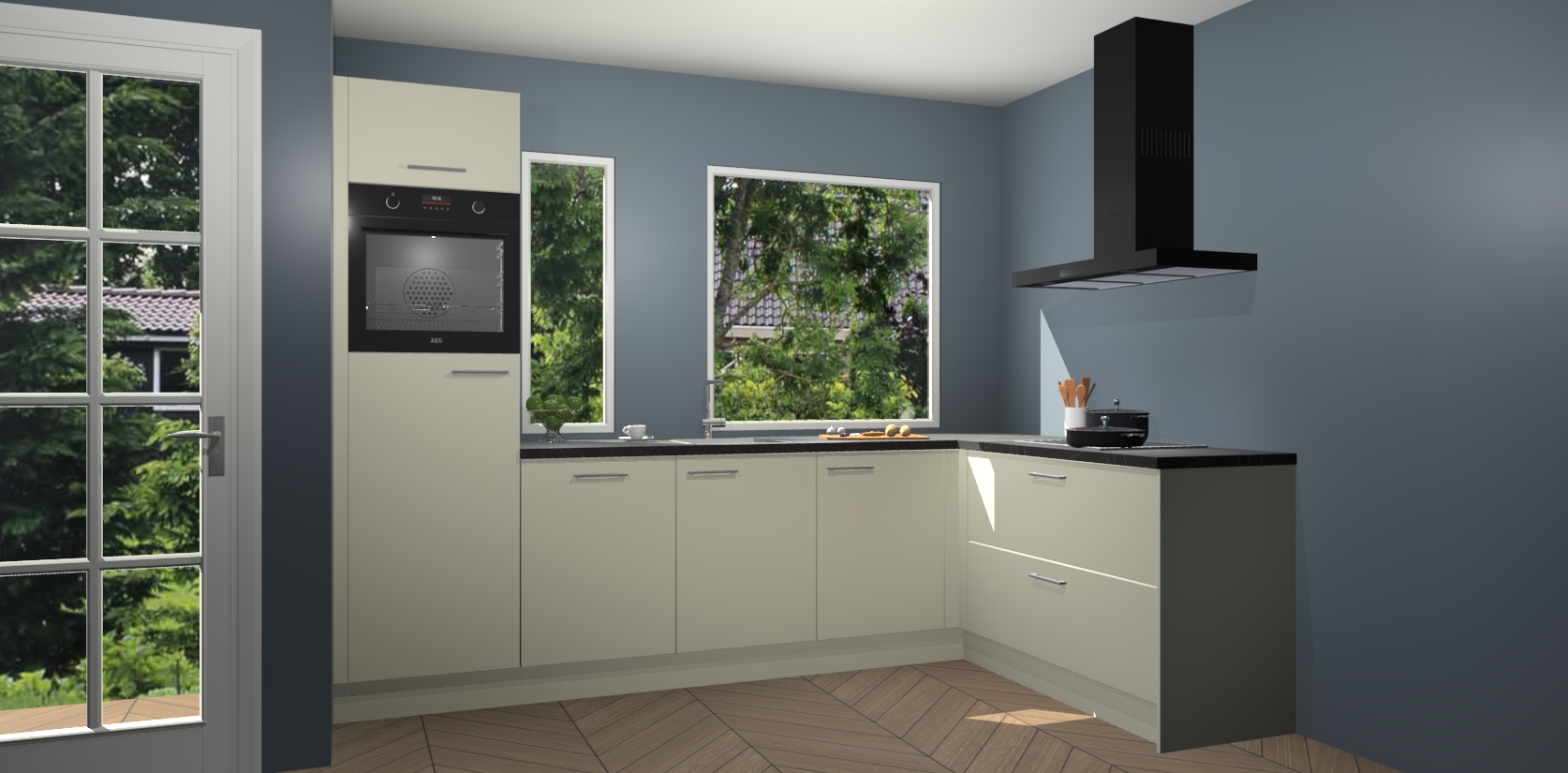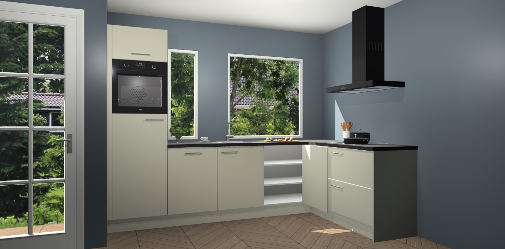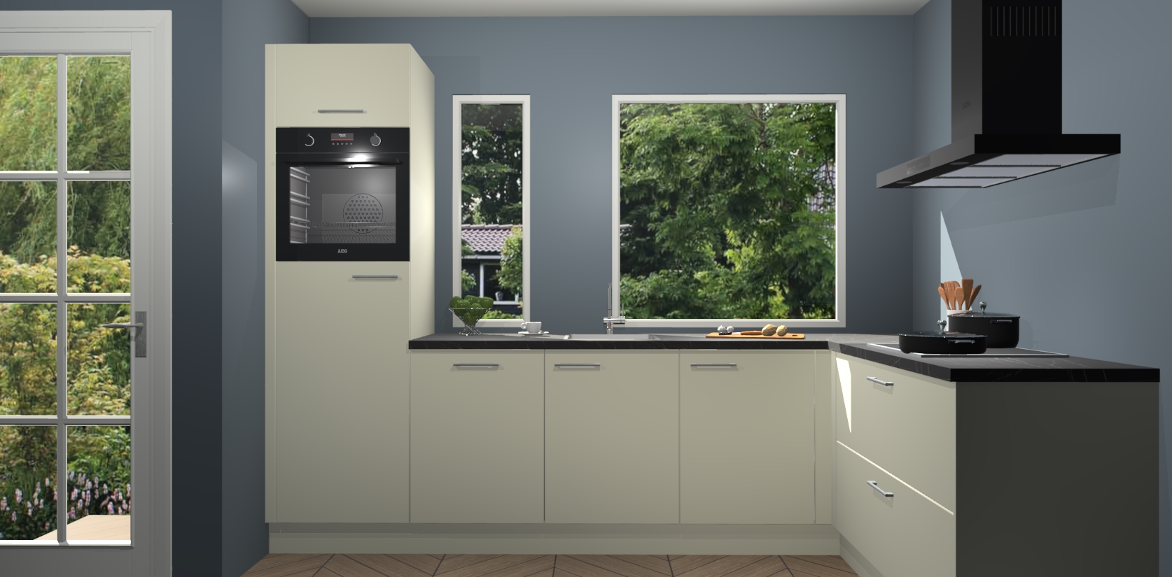 Deze complete keuken wordt geleverd met 5 inbouwapparaten: een oven, inductiekookplaat, afzuigkap, vaatwasser en koelkast. De toestellen kunnen na bestelling ook gemakkelijk worden opgewaardeerd naar AEG. Bovendien is elke deur in deze keuken voorzien van handige softclose technologie voor eenvoudig gebruik! Als een leuke toevoeging zit in deze keuken ook een carrousel, zo hoef je niet meer de hoek in duiken om iets te pakken.