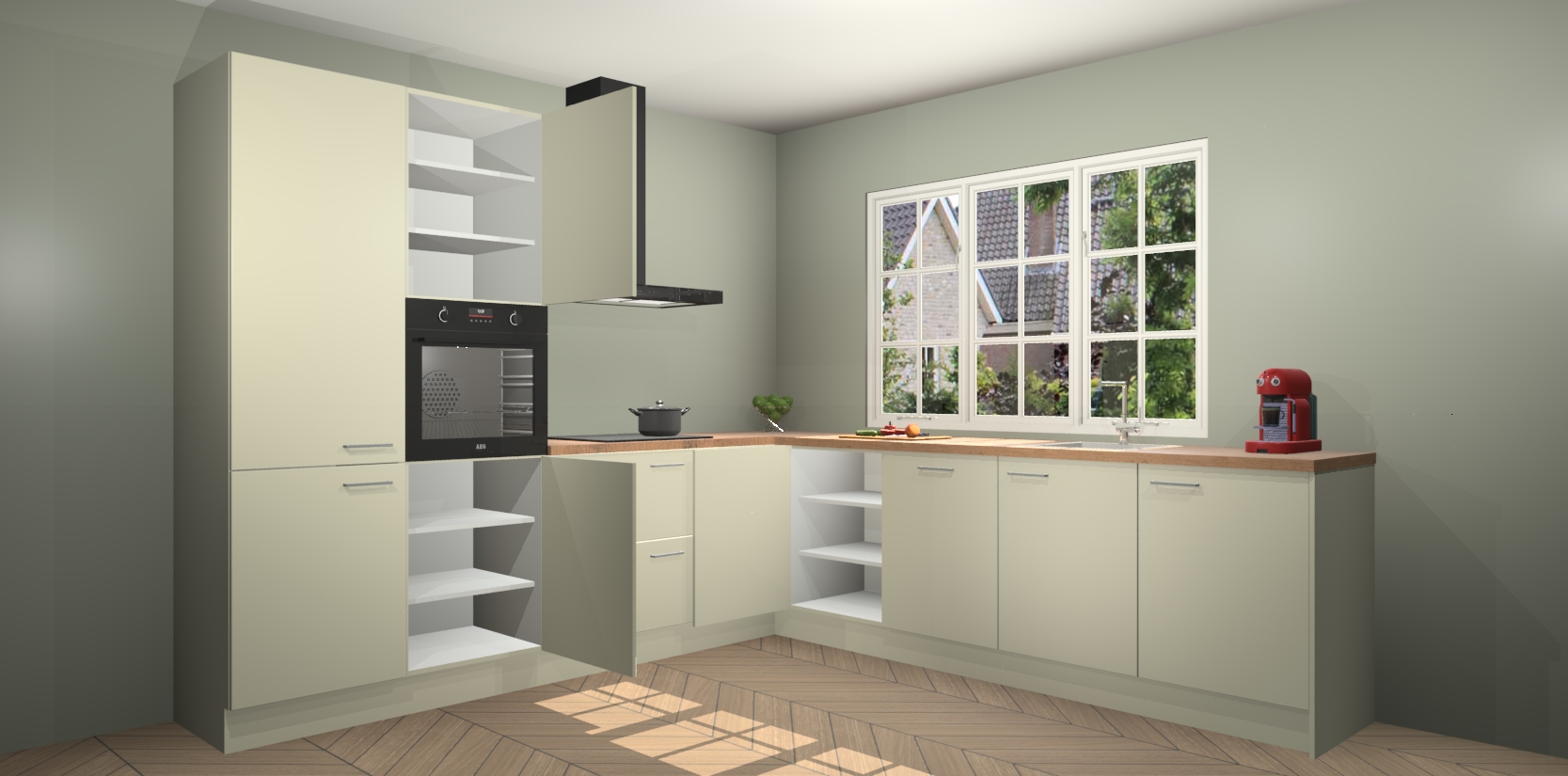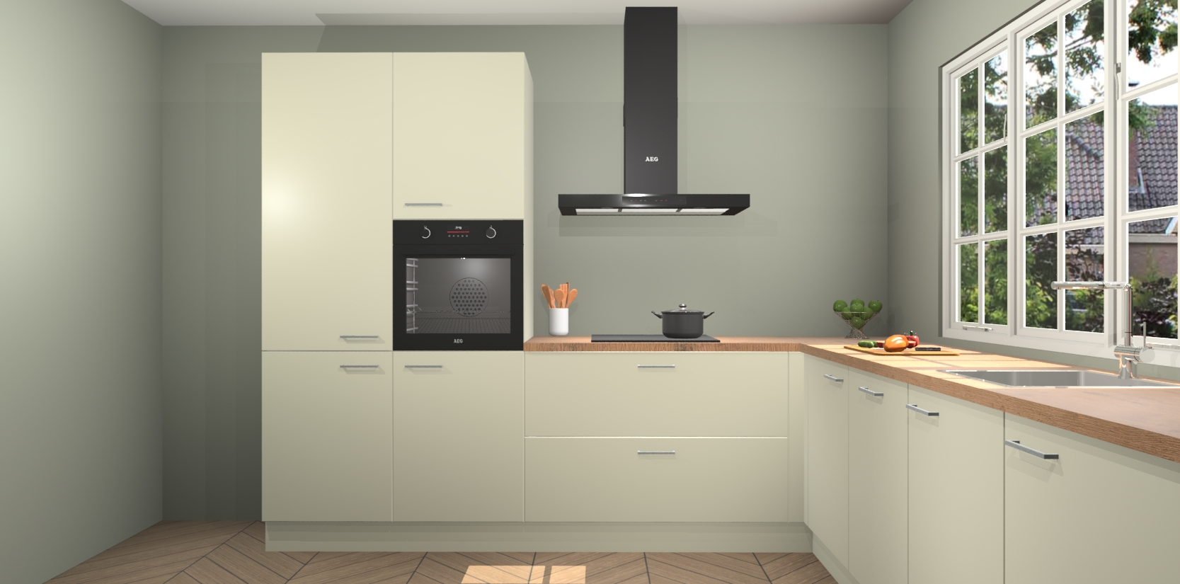 De keuken heeft veel opbergruimte, waardoor u alle ingrediënten gemakkelijk bereikbaar hebt staan. En daarnaast bevat deze volledig uitgeruste keuken ook 5 ingebouwde apparaten: een oven, inductiekookplaat, afzuigkap, vaatwasser en koelkast. Deze zijn heel eenvoudig na bestellen te upgraden naar AEG als u dit wilt. Bovendien zijn de softclose-kastdeuren ideaal; geef ze gewoon even een tikje en ze sluiten automatisch met geruisloze precisie.