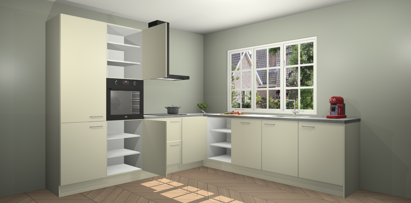 De keuken heeft veel opbergruimte, waardoor u alle ingrediënten gemakkelijk bereikbaar hebt staan. En daarnaast bevat deze volledig uitgeruste keuken ook 5 ingebouwde apparaten: een oven, inductiekookplaat, afzuigkap, vaatwasser en koelkast. Deze zijn heel eenvoudig na bestellen te upgraden naar AEG als u dit wilt. Bovendien zijn de softclose-kastdeuren ideaal; geef ze gewoon even een tikje en ze sluiten automatisch met geruisloze precisie.