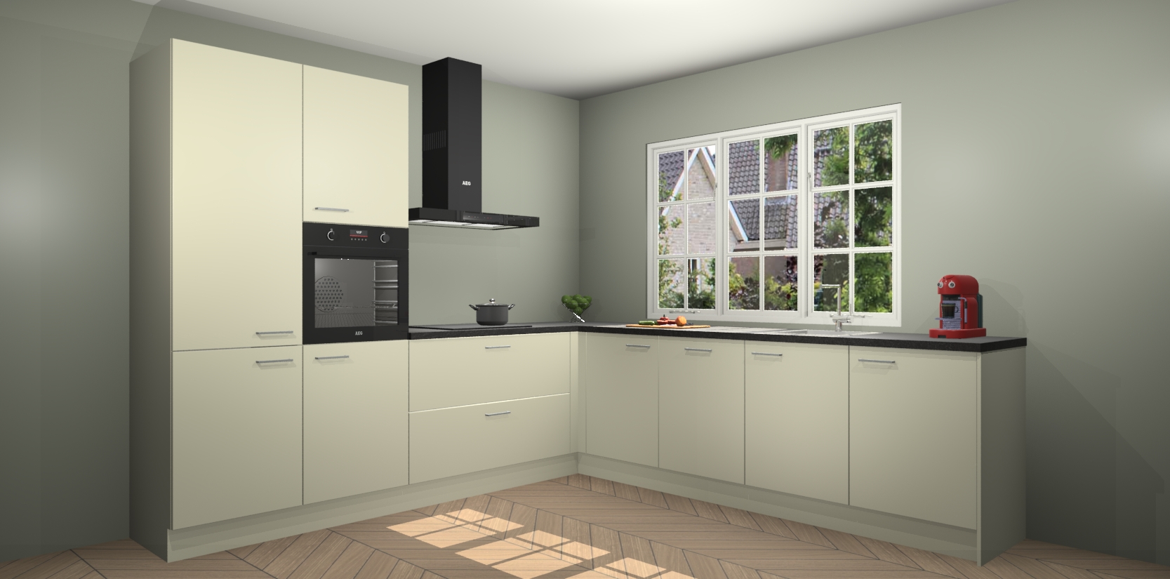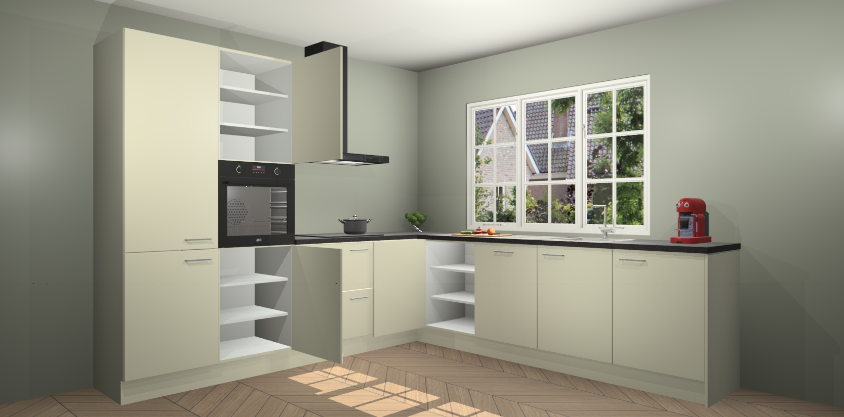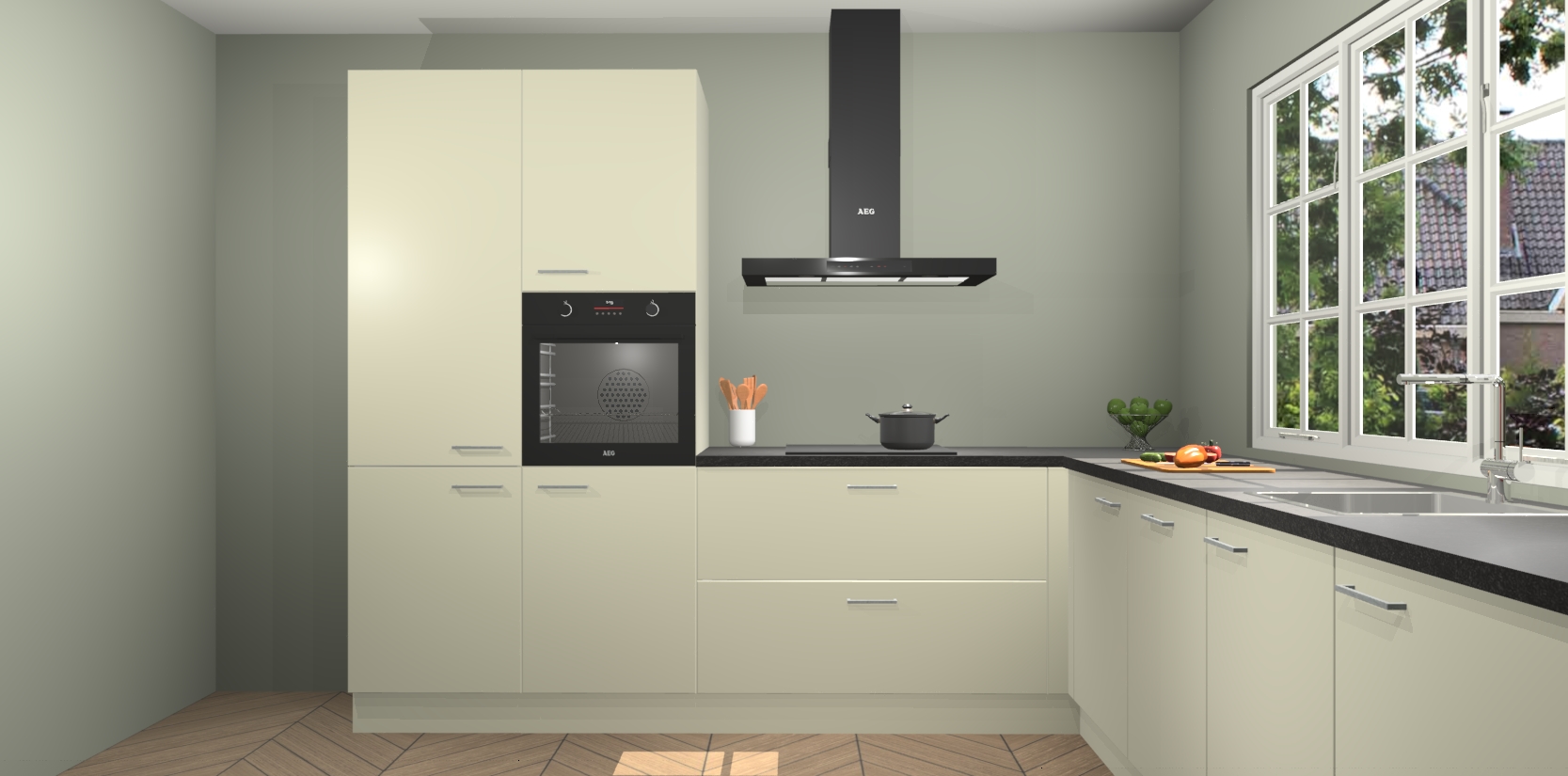 De keuken heeft veel opbergruimte, waardoor u alle ingrediënten gemakkelijk bereikbaar hebt staan. En daarnaast bevat deze volledig uitgeruste keuken ook 5 ingebouwde apparaten: een oven, inductiekookplaat, afzuigkap, vaatwasser en koelkast. Deze zijn heel eenvoudig na bestellen te upgraden naar AEG als u dit wilt. Bovendien zijn de softclose-kastdeuren ideaal; geef ze gewoon even een tikje en ze sluiten automatisch met geruisloze precisie.