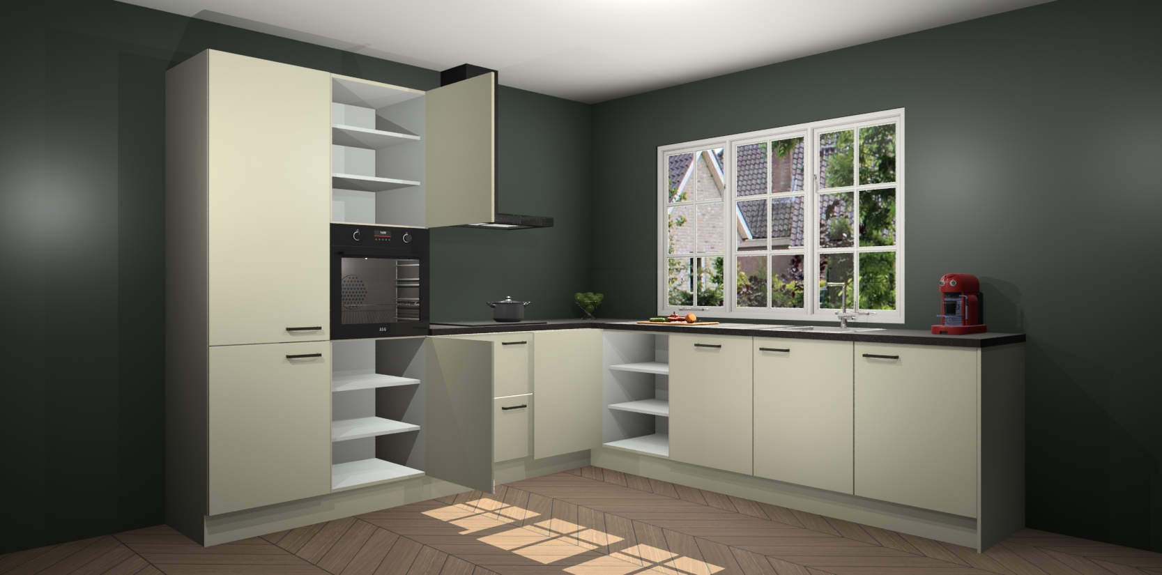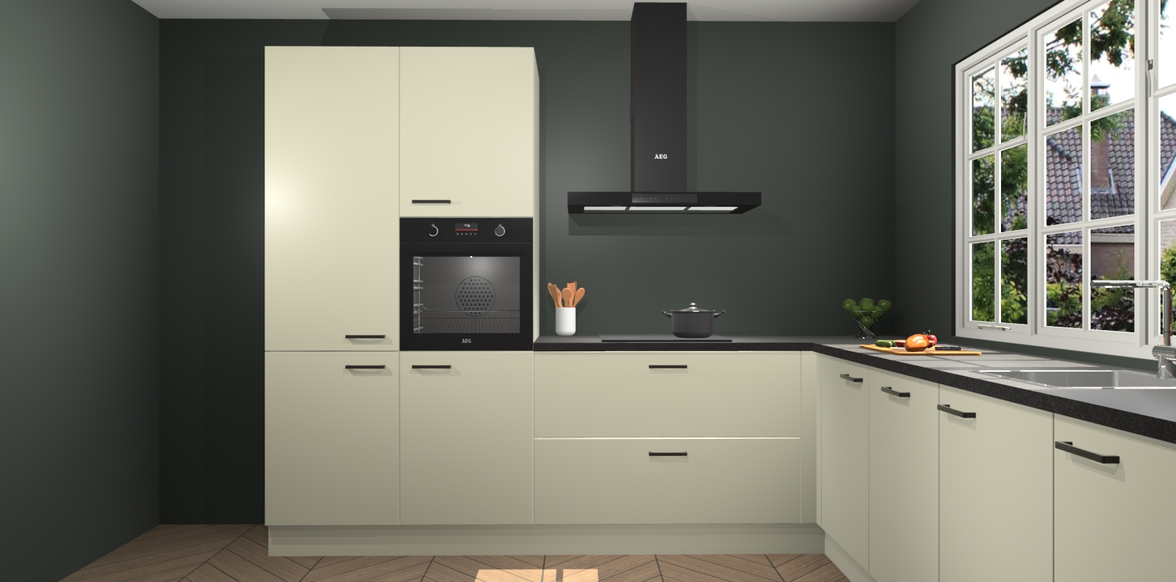 De keuken heeft veel opbergruimte, waardoor u alle ingrediënten gemakkelijk bereikbaar hebt staan. En daarnaast bevat deze volledig uitgeruste keuken ook 5 ingebouwde apparaten: een oven, inductiekookplaat, afzuigkap, vaatwasser en koelkast. Deze zijn heel eenvoudig na bestellen te upgraden naar AEG als u dit wilt. Bovendien zijn de softclose-kastdeuren ideaal; geef ze gewoon even een tikje en ze sluiten automatisch met geruisloze precisie.