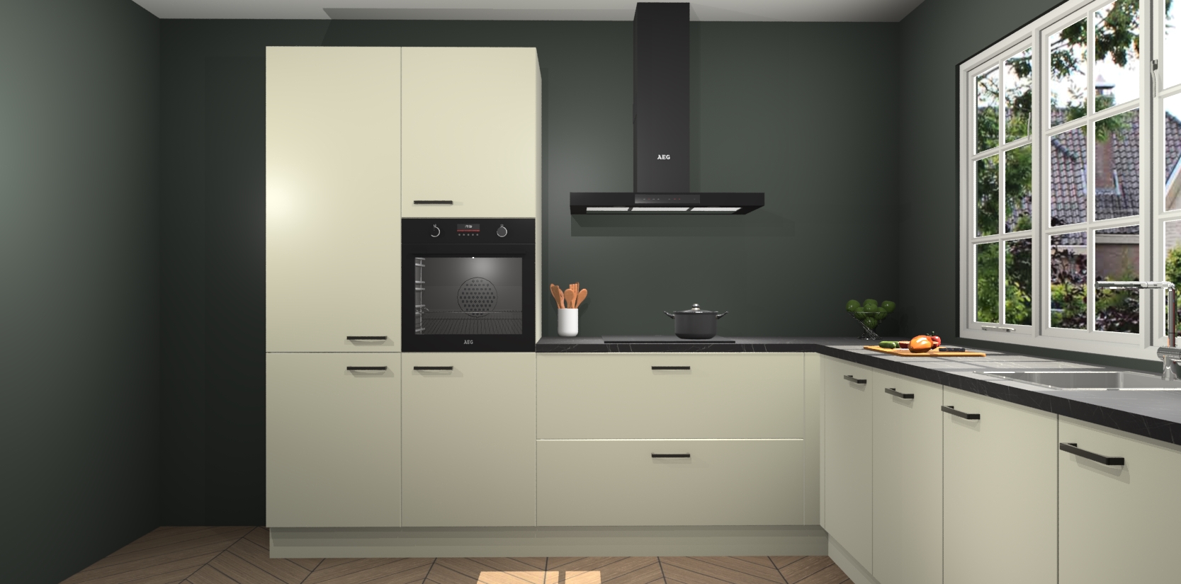 De keuken heeft veel opbergruimte, waardoor u alle ingrediënten gemakkelijk bereikbaar hebt staan. En daarnaast bevat deze volledig uitgeruste keuken ook 5 ingebouwde apparaten: een oven, inductiekookplaat, afzuigkap, vaatwasser en koelkast. Deze zijn heel eenvoudig na bestellen te upgraden naar AEG als u dit wilt. Bovendien zijn de softclose-kastdeuren ideaal; geef ze gewoon even een tikje en ze sluiten automatisch met geruisloze precisie.
