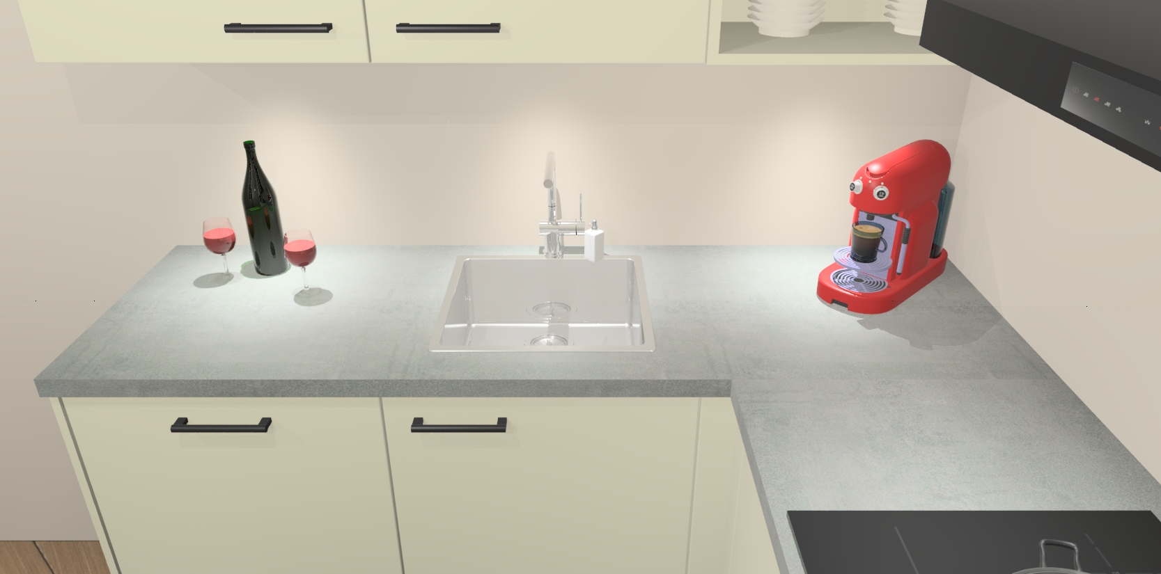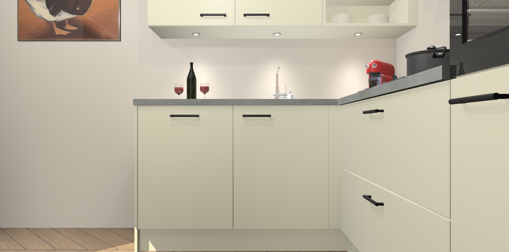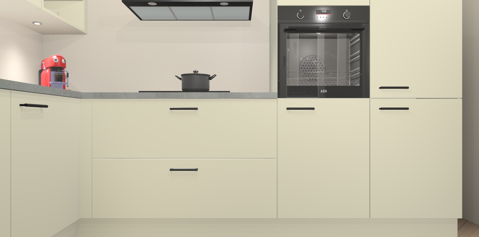 Inclusief plinten, stelpoten en werkblad
