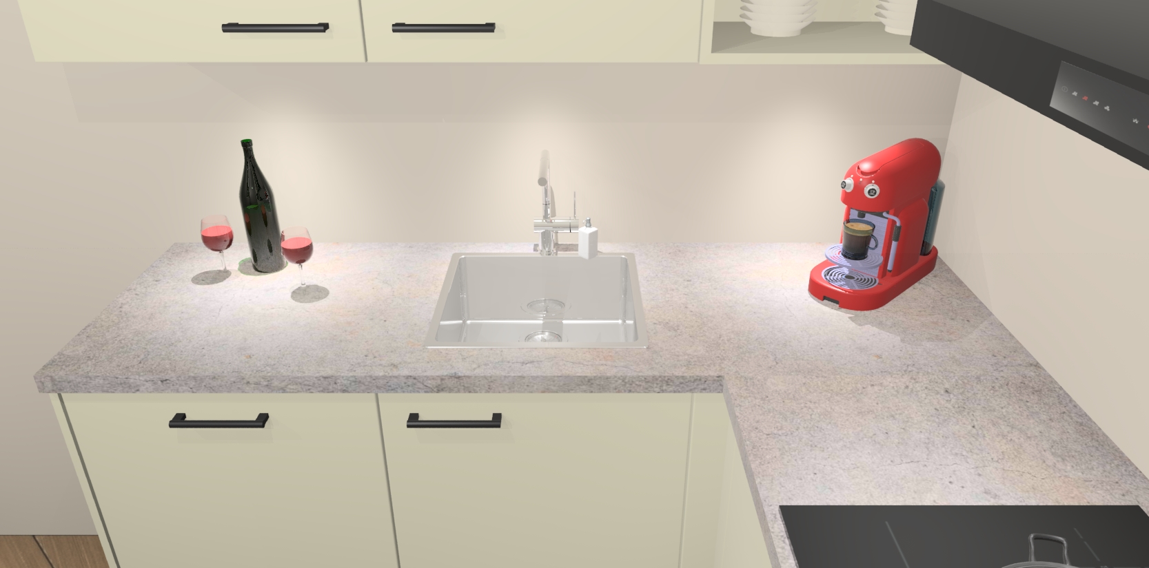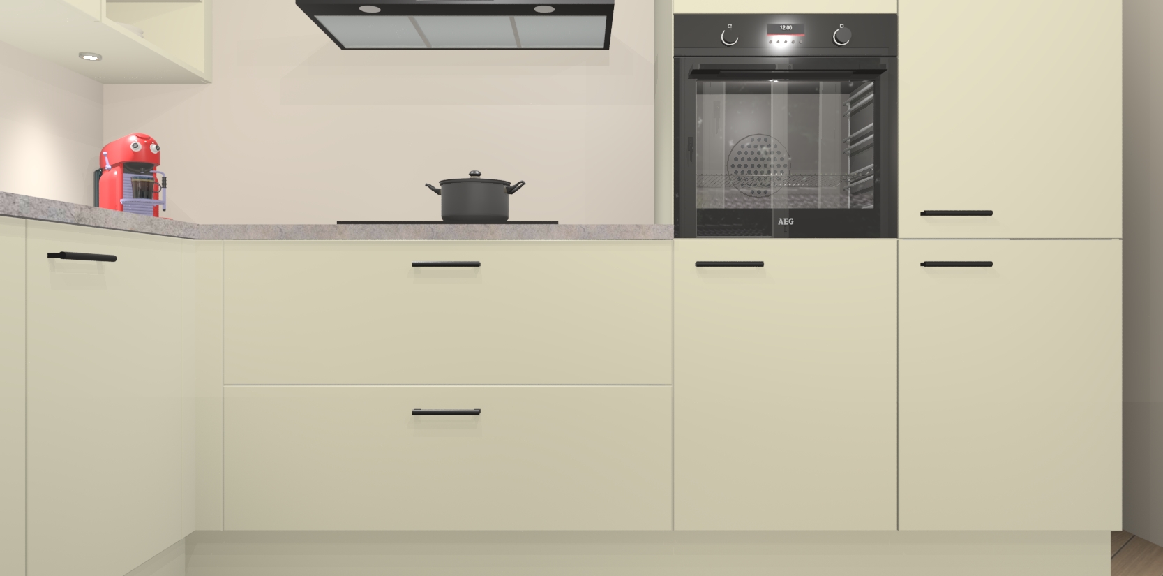 Inclusief plinten, stelpoten en werkblad