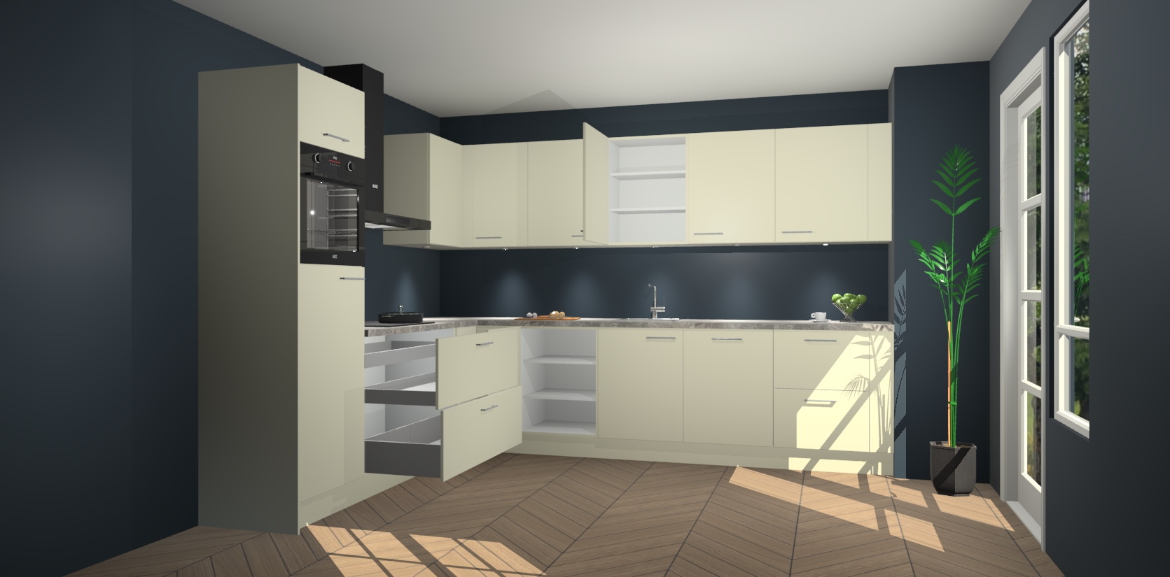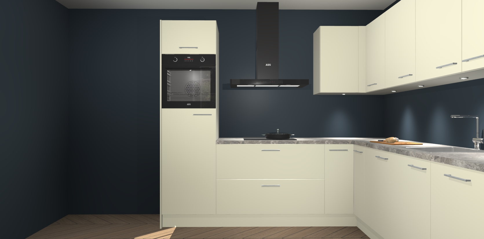 De Magnolia keuken Debar is uitgerust met vijf inbouwapparaten die elke kooktaak handig en efficiënt maken. Een oven, inductiekookplaat, afzuigkap, vaatwasser en koelkast zijn standaard, maar kunnen na bestelling eenvoudig worden geupgrade naar AEG. Profiteer vervolgens van de softclose deuren voor snelle toegang en geruisloze toegang.