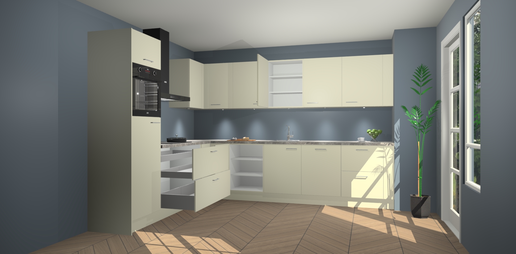 Inclusief plinten, stelpoten en werkblad