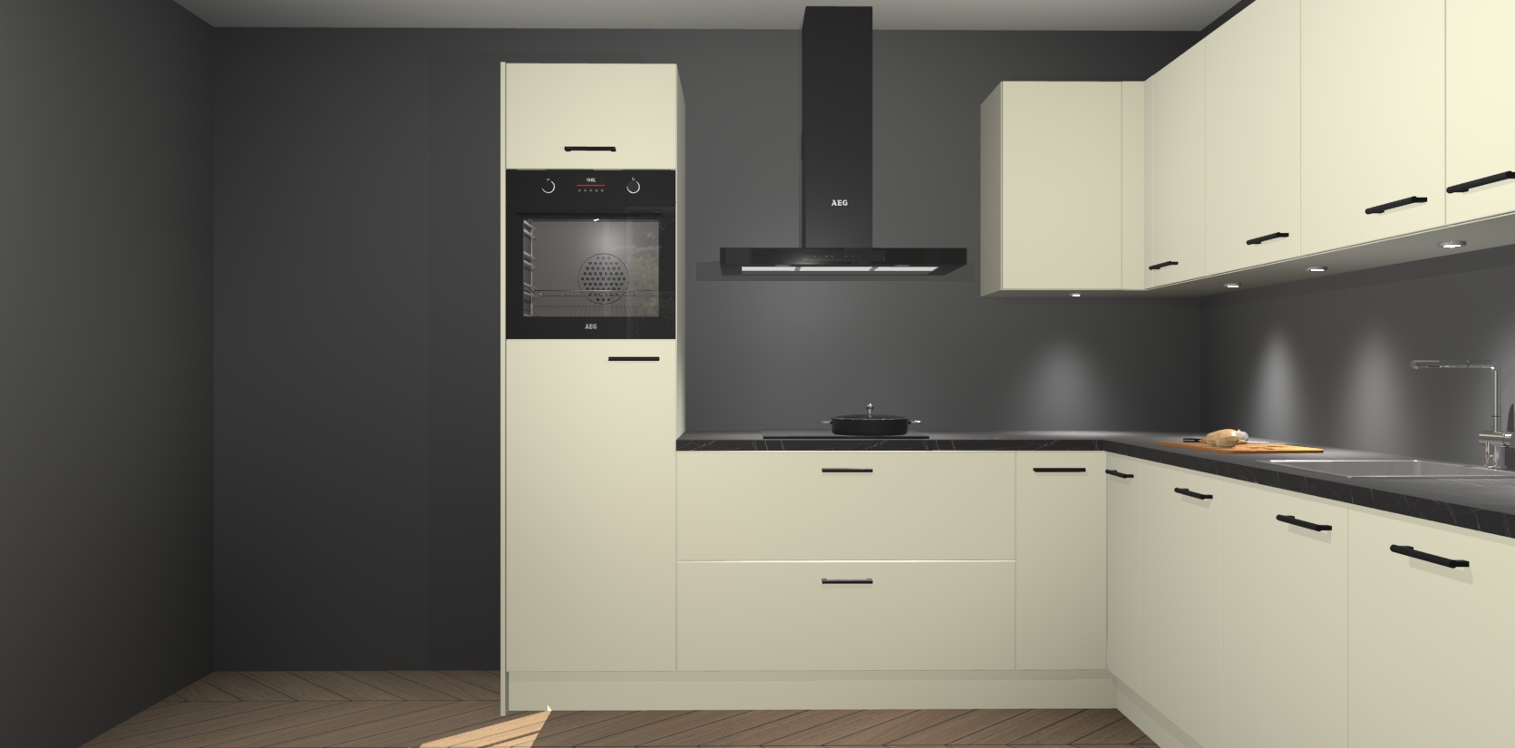 De Magnolia keuken Debar is uitgerust met vijf inbouwapparaten die elke kooktaak handig en efficiënt maken. Een oven, inductiekookplaat, afzuigkap, vaatwasser en koelkast zijn standaard, maar kunnen na bestelling eenvoudig worden geupgrade naar AEG. Profiteer vervolgens van de softclose deuren voor snelle toegang en geruisloze toegang.