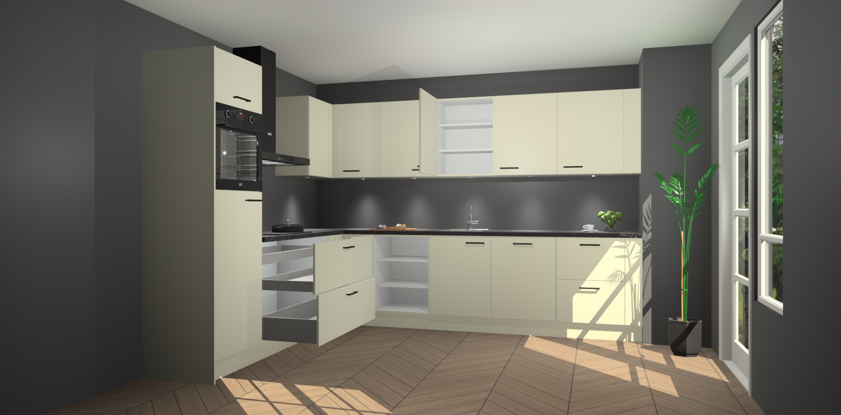 Inclusief plinten, stelpoten en werkblad