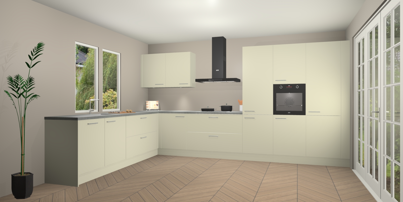 Inclusief plinten, stelpoten en werkblad