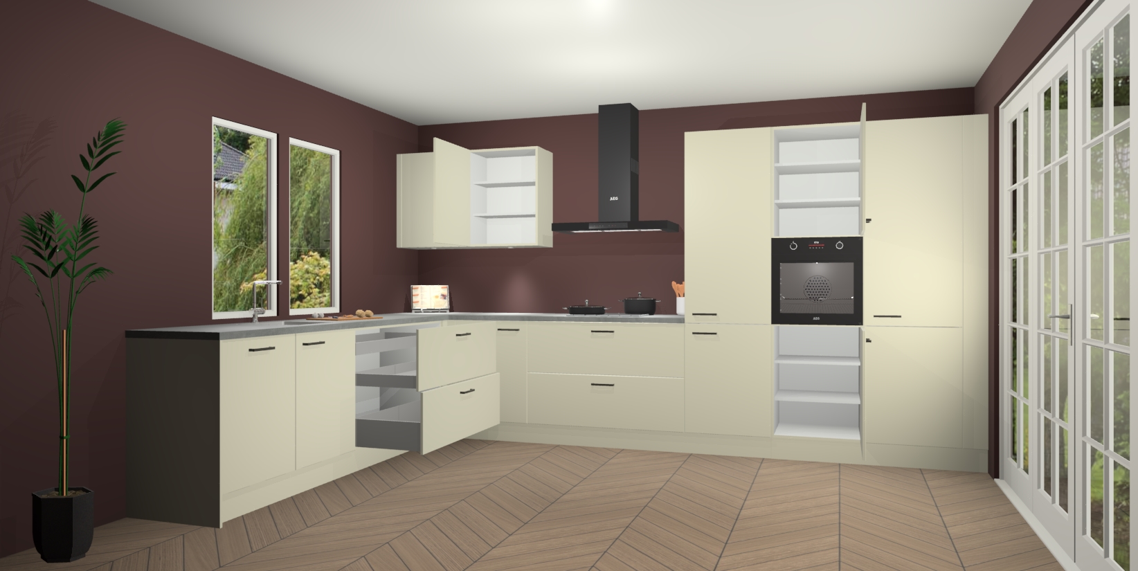 Inclusief plinten, stelpoten en werkblad