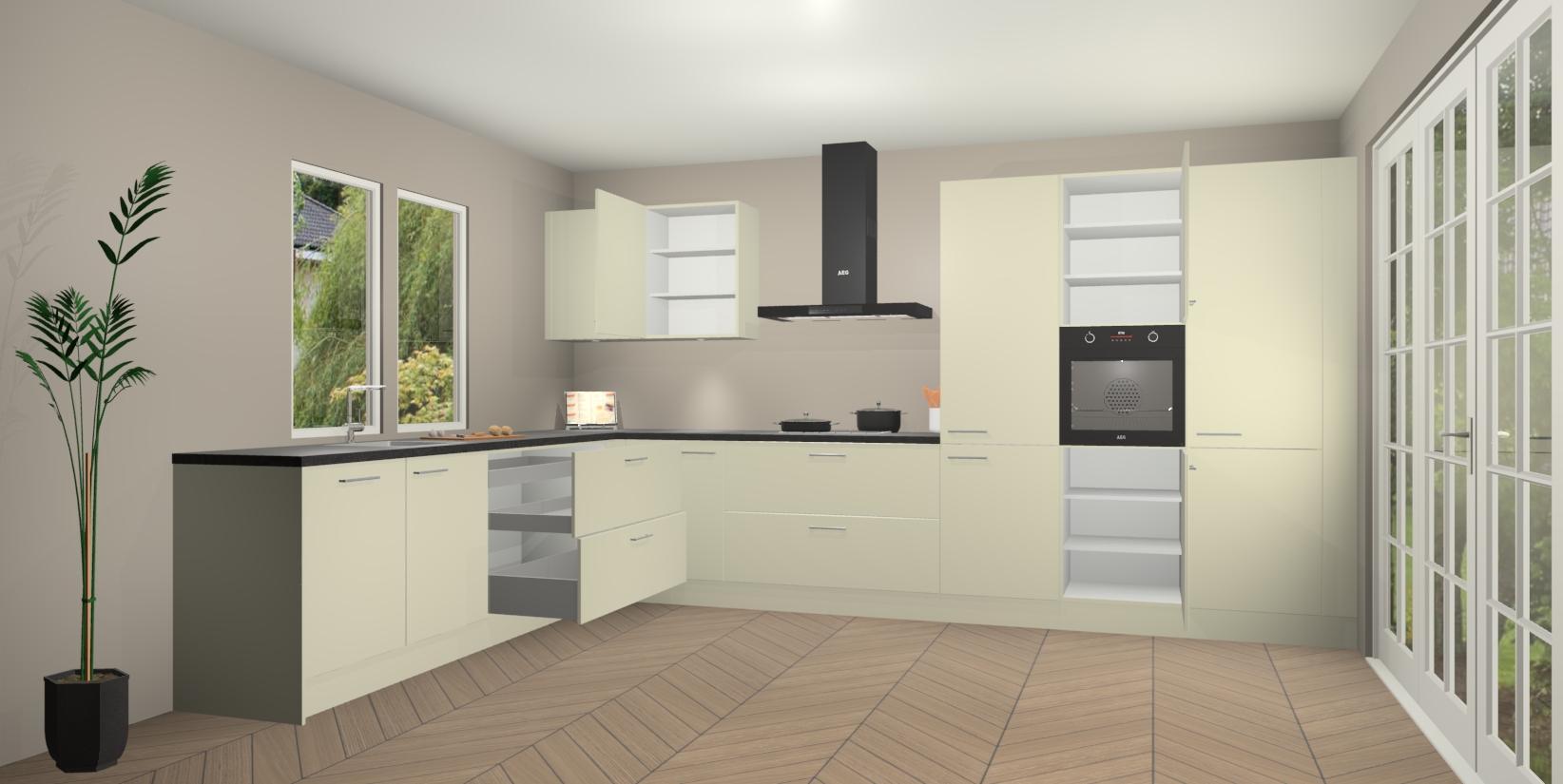 In deze box zijn alle kleuren verzameld van de deuren en werkbladen. Vraag de gratis kleurenbox aan en kijk thuis rustig verder!