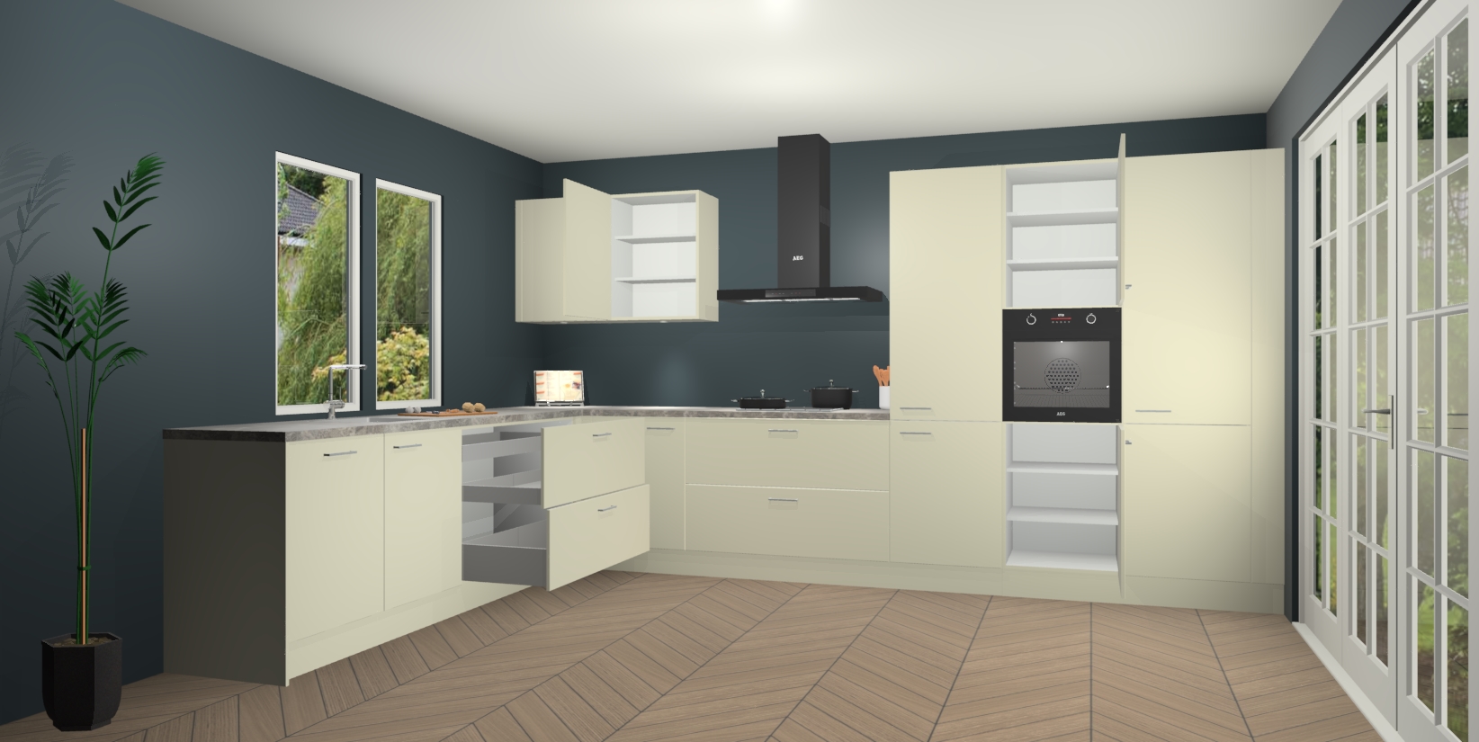 In deze box zijn alle kleuren verzameld van de deuren en werkbladen. Vraag de gratis kleurenbox aan en kijk thuis rustig verder!