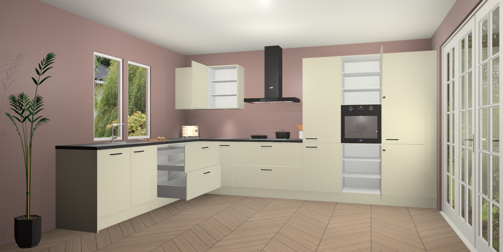 Inclusief plinten, stelpoten en werkblad