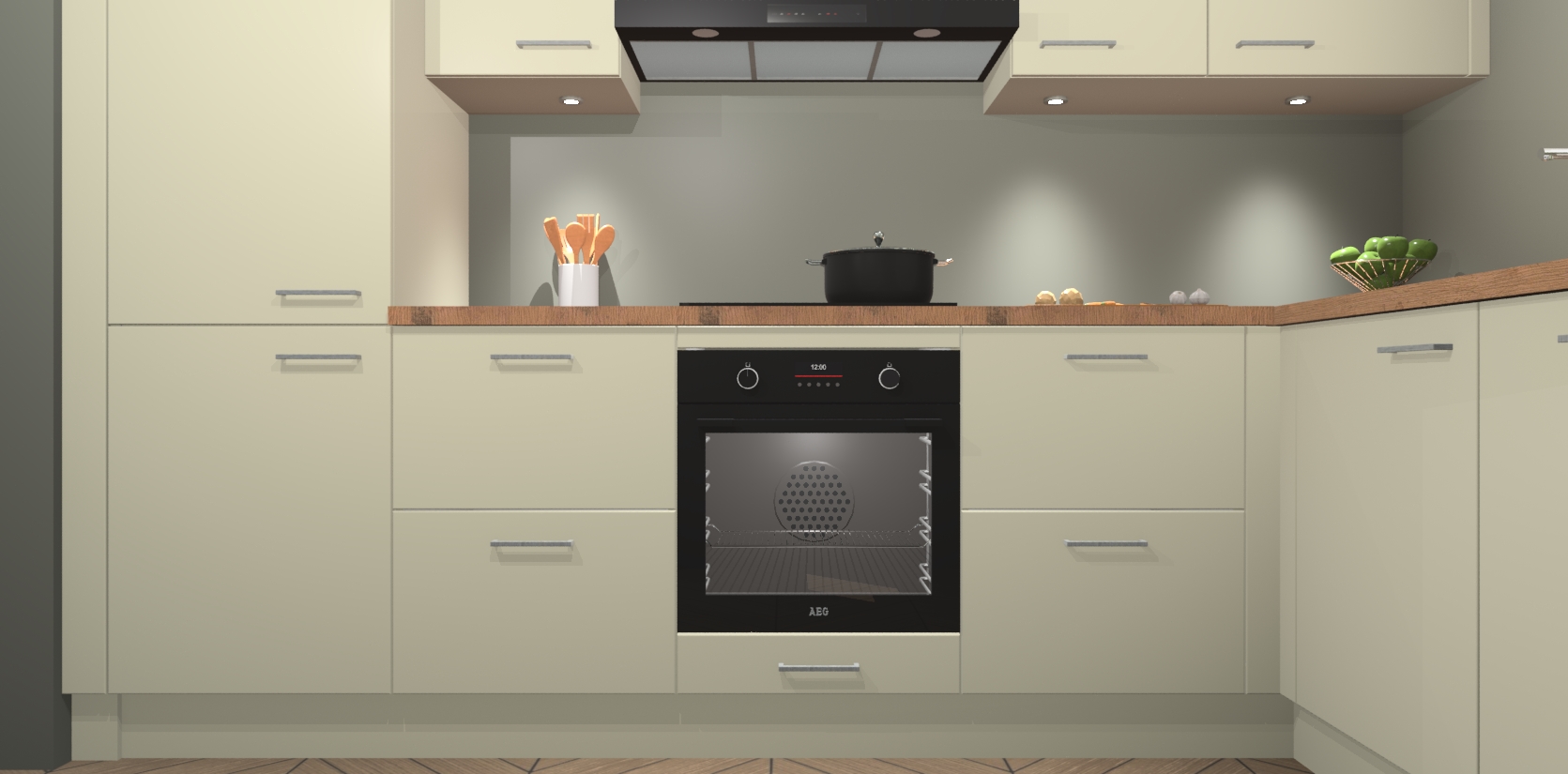 De Magnolia keuken Geneve is uitgerust met 5 inbouwapparaten - een oven, inductiekookplaat, afzuigkap, vaatwasser en koelkast - voor al uw kook- en bewaarbehoeftes. U kunt deze apparaten desgewenst eenvoudig upgraden naar AEG of de oven omruilen voor een combimagnetron na het plaatsen van uw bestelling. En met de soft close deuren, voldoende opbergruimte en kasten die voorgemonteerd worden geleverd, bent u in een mum van tijd klaar om heerlijke maaltijden te bereiden!