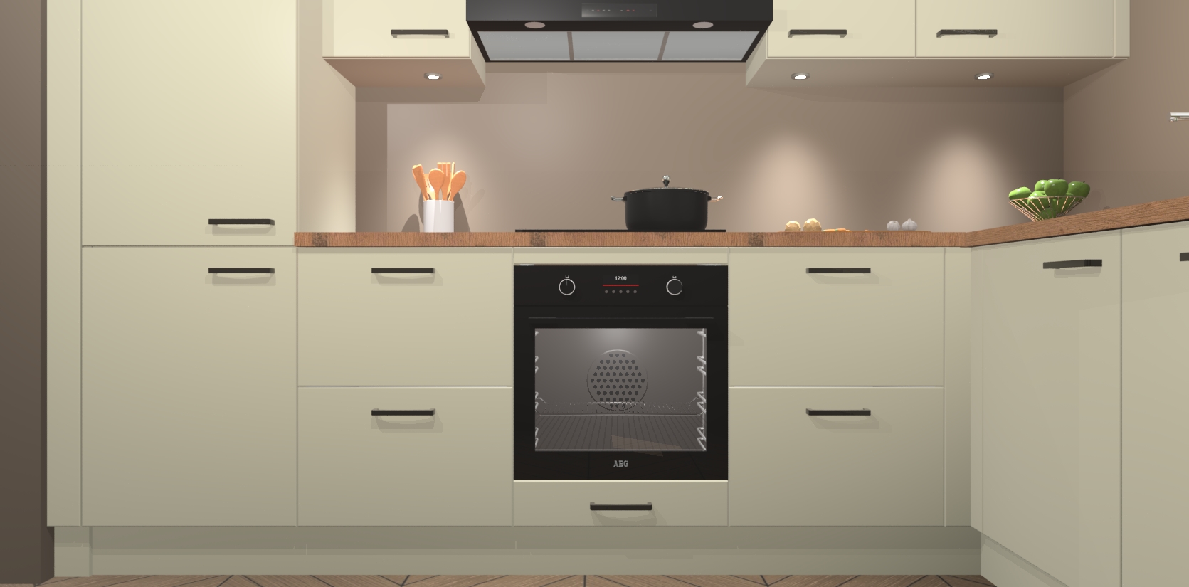 De Magnolia keuken Geneve is uitgerust met 5 inbouwapparaten - een oven, inductiekookplaat, afzuigkap, vaatwasser en koelkast - voor al uw kook- en bewaarbehoeftes. U kunt deze apparaten desgewenst eenvoudig upgraden naar AEG of de oven omruilen voor een combimagnetron na het plaatsen van uw bestelling. En met de soft close deuren, voldoende opbergruimte en kasten die voorgemonteerd worden geleverd, bent u in een mum van tijd klaar om heerlijke maaltijden te bereiden!