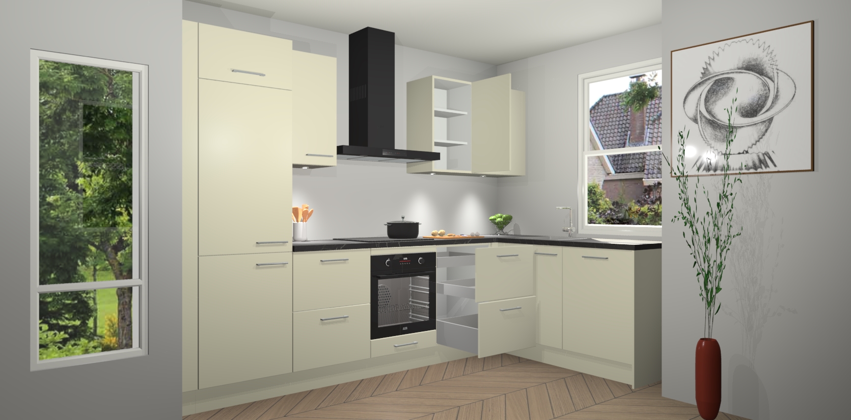 De Magnolia keuken Geneve is uitgerust met 5 inbouwapparaten - een oven, inductiekookplaat, afzuigkap, vaatwasser en koelkast - voor al uw kook- en bewaarbehoeftes. U kunt deze apparaten desgewenst eenvoudig upgraden naar AEG of de oven omruilen voor een combimagnetron na het plaatsen van uw bestelling. En met de soft close deuren, voldoende opbergruimte en kasten die voorgemonteerd worden geleverd, bent u in een mum van tijd klaar om heerlijke maaltijden te bereiden!