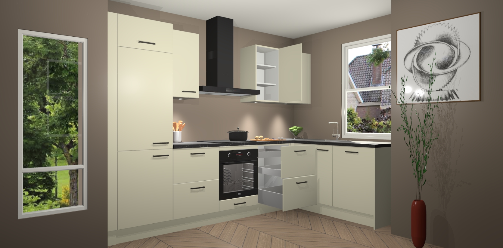 In deze box zijn alle kleuren verzameld van de deuren en werkbladen. Vraag de gratis kleurenbox aan en kijk thuis rustig verder!
