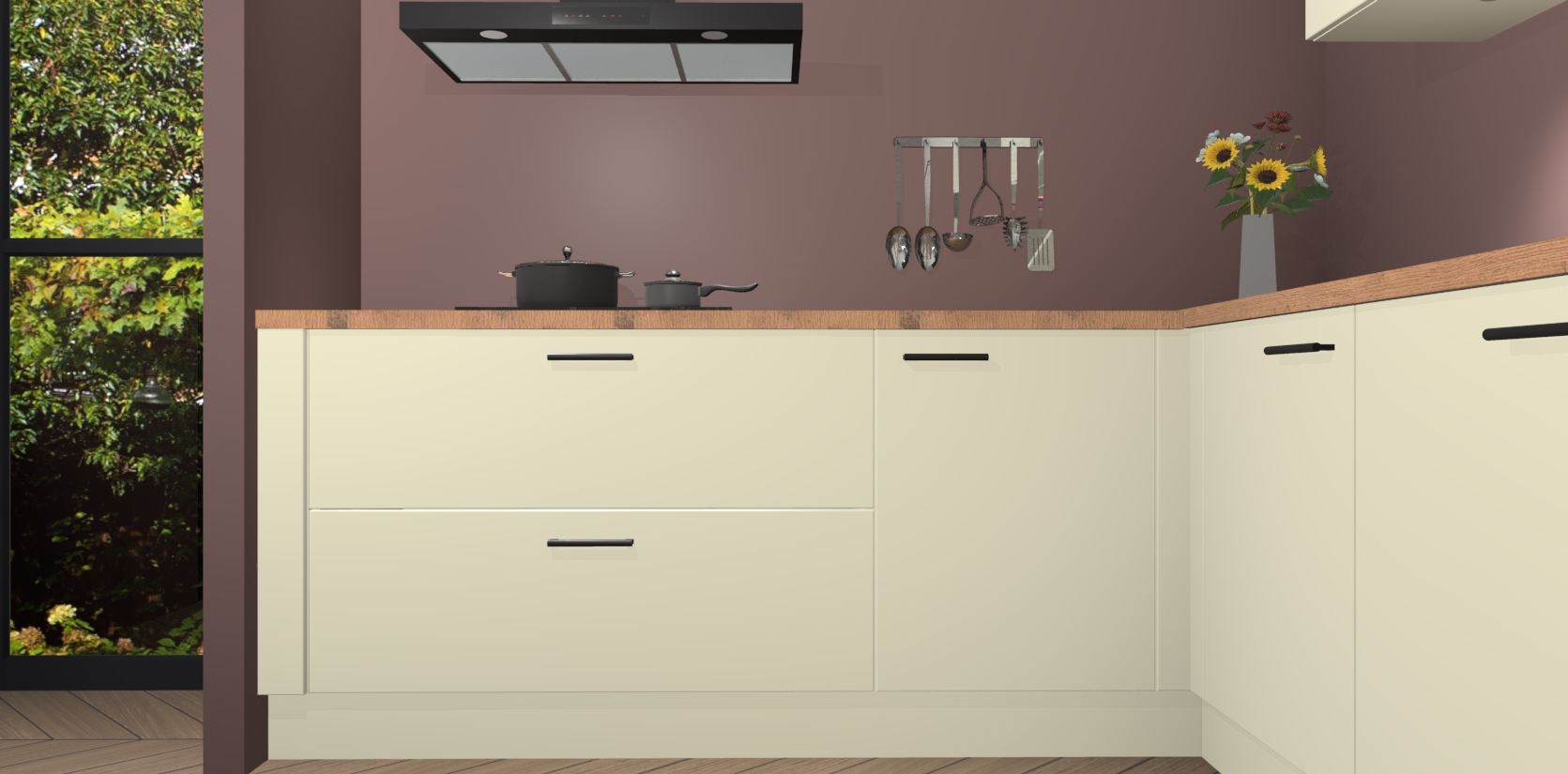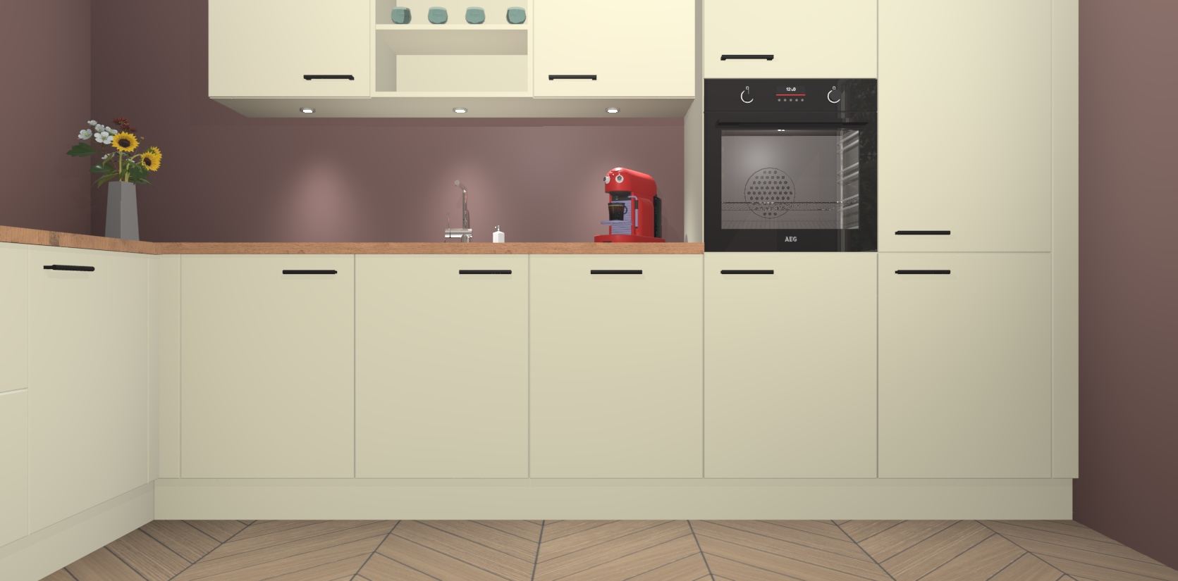 Inclusief plinten, stelpoten en werkblad