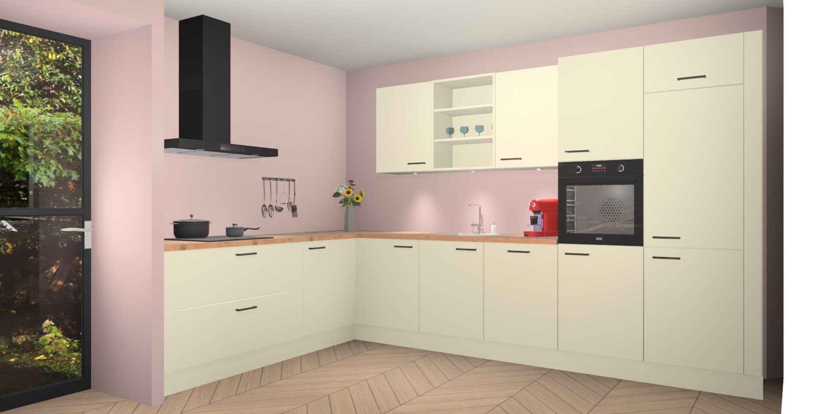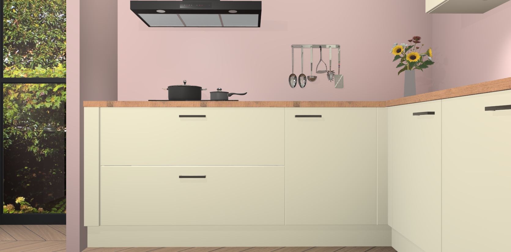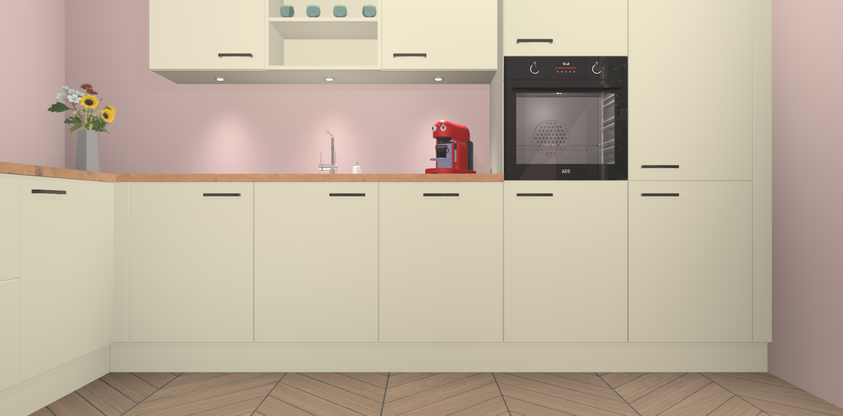 Inclusief plinten, stelpoten en werkblad
