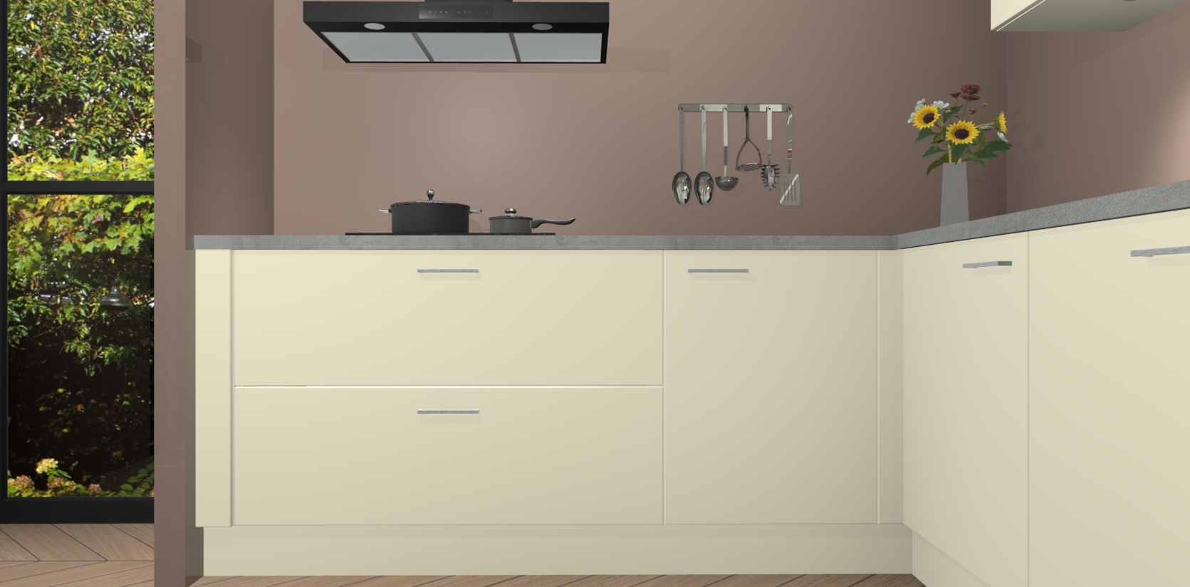 In deze box zijn alle kleuren verzameld van de deuren en werkbladen. Vraag de gratis kleurenbox aan en kijk thuis rustig verder!
