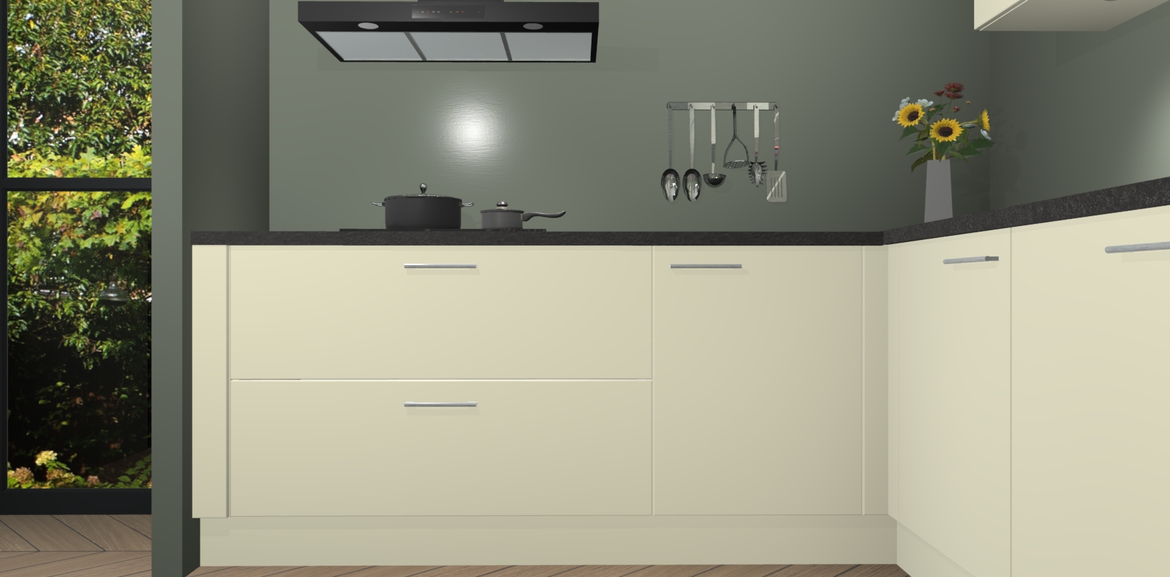 Inclusief plinten, stelpoten en werkblad