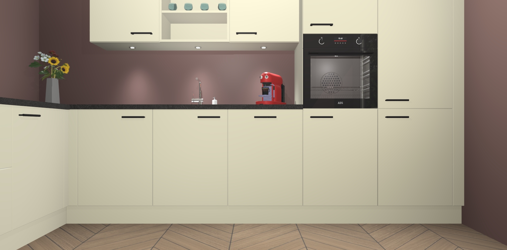 Inclusief plinten, stelpoten en werkblad