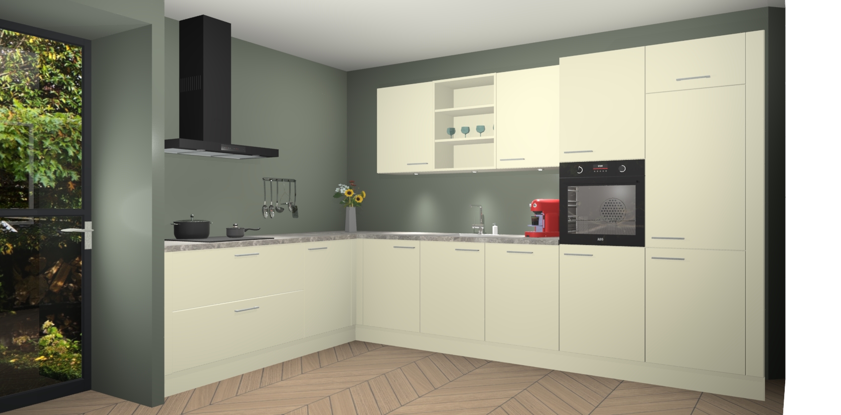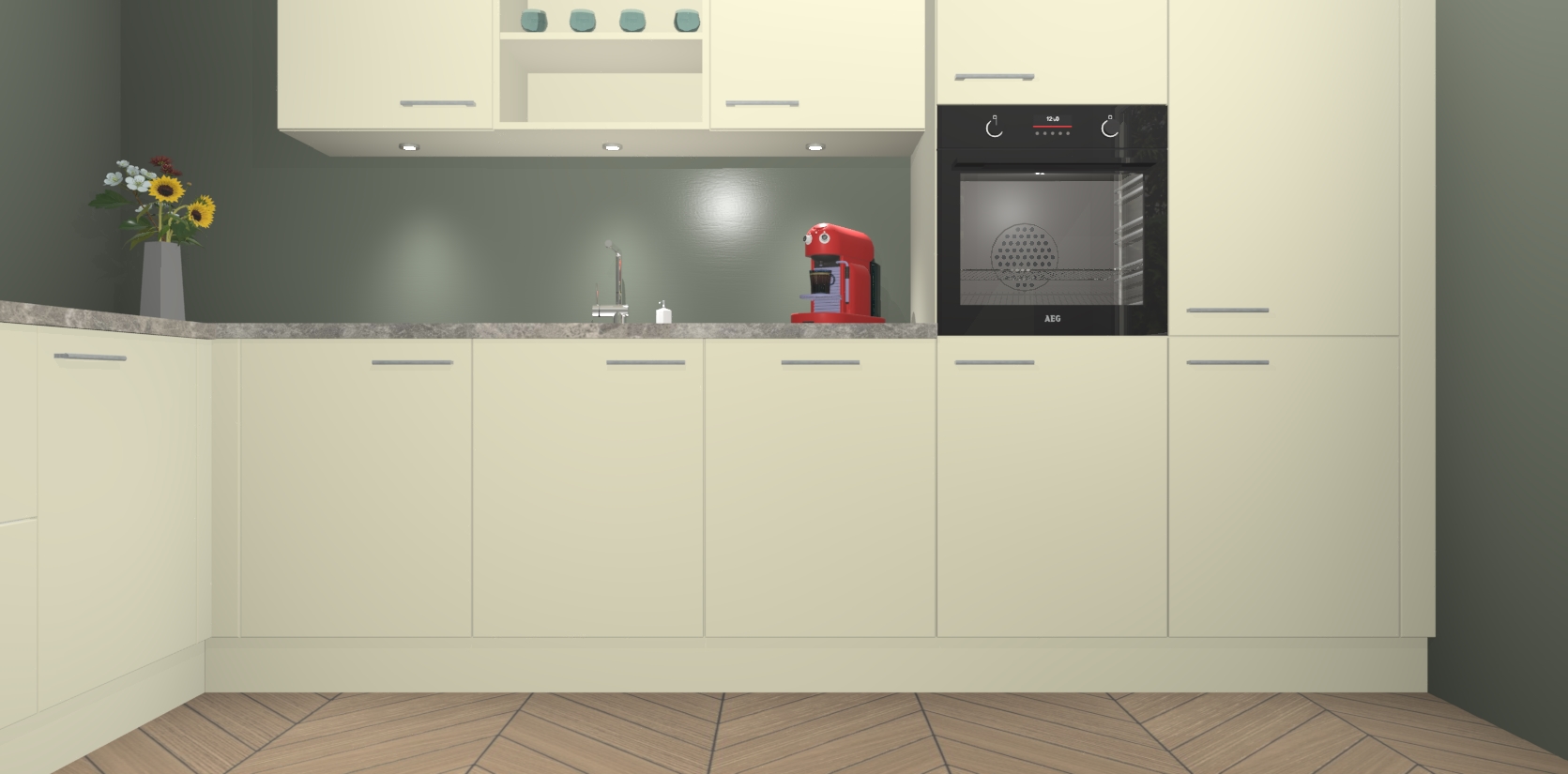 Inclusief plinten, stelpoten en werkblad