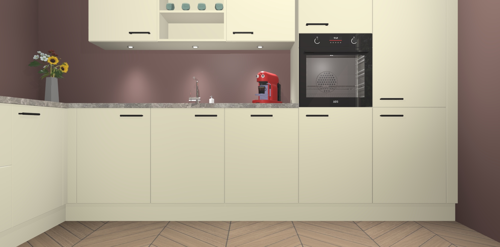 Inclusief plinten, stelpoten en werkblad